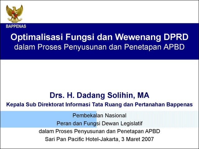 Pembekalan Nasional Peran dan Fungsi Dewan Legislatif dalam Proses Penyusunan dan Penetapan APBD @ Sari Pan Pacific Hotel-Jakarta, 3 Maret 2007