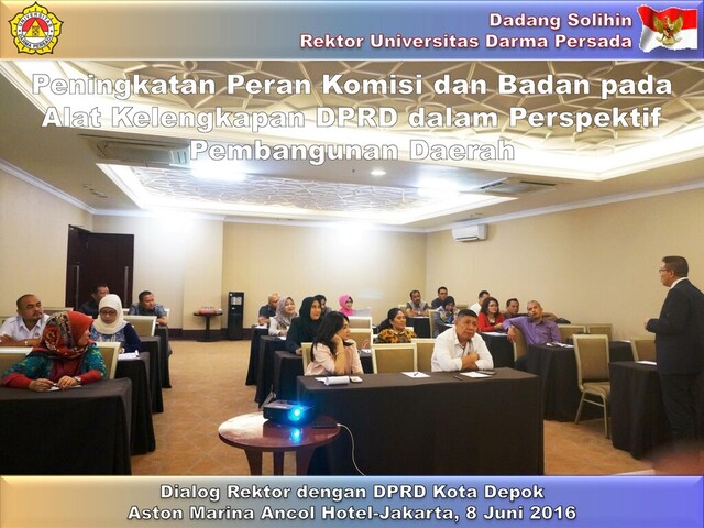 dalam melaksanakan tugas dan fungsinya: • Berdasarkan prinsip saling mengimbangi checks and balances, • Yang dilandasi prinsip penyelenggaraan pemerintahan yang bersih dan berwibawa serta sekaligus ... • Meningkatkan kewibawaan dan kepercayaan masyarakat terhadap fungsi representasi DPRD yang memperjuangkan aspirasi masyarakat, serta ... • Untuk mewujudkan DPRD yang demokratis, efektif, dan akuntabel Untuk menjamin Sinergi Stakeholders Kota Depok