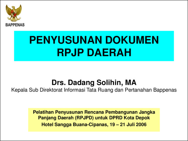 Pelatihan Penyusunan Rencana Pembangunan Jangka Panjang Daerah (RPJPD) untuk DPRD Kota Depok @ Hotel Sangga Buana-Cipanas, 19 – 21 Juli 2006
