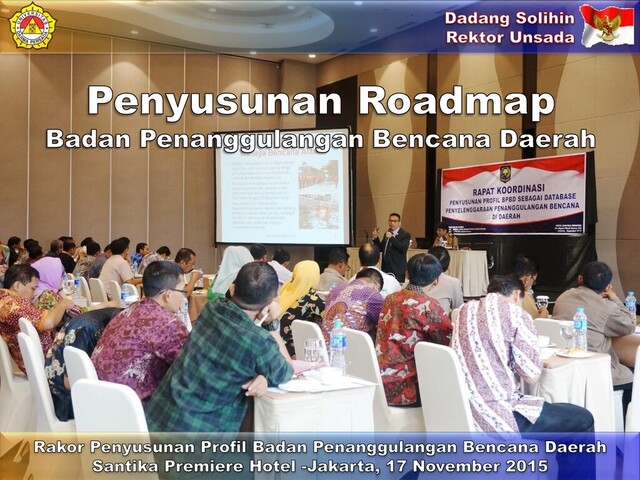 utama yang dilakukan dalam lingkup ini: 1) Identifikasi faktor-faktor kunci dan strategis yang dapat menjamin terimplementasinya Roadmap ini, dan 2) Pentahapan Penanggulangan Bencana BPBD 2015 – 2019 . Faktor pertama berfungsi mengamankan implementasi Roadmap ini. Faktor kedua terkait pengelolaan proses implementasi, bertujuan meningkatkan peluang keberhasilannya melalui pendekatan-pendekatan yang lebih sistematis. 2. Identifikasi Program/Kegiatan. Pada tahap ini dilakukan sintesis solusi secara lebih rinci: identifikasi program/kegiatan yang jika diimplementasikan dengan baik dapat mengurangi gap antara kondisi saat ini dengan capaian target yang diinginkan. 3. Indikator Keberhasilan dan Mekanisme Monev. Untuk tiap program dan kegiatan, perlu dibuatkan indikator keberhasilannya, sekaligus mekanisme pengukuran untuk kepentingan monitoring dan evaluasi. 20 dadang-solihin.blogspot.com