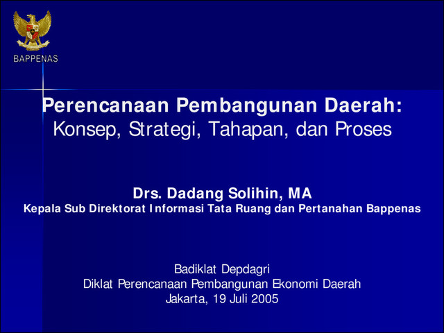 Badiklat Depdagri Diklat Perencanaan Pembangunan Ekonomi Daerah @ Jakarta, 19 Juli 2005