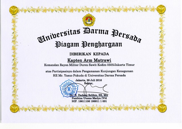 28 Juli 2016 Terima kasih atas partisipasinya dalam pengamanan kunjungan VVIP HE Mr. Yasuo Fukuda di Kampus Universitas Darma Persada