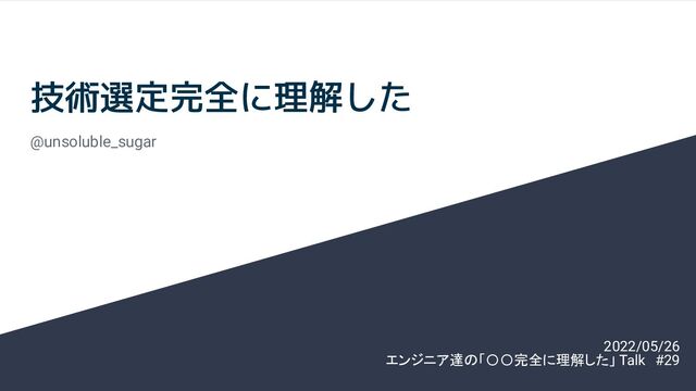 @unsoluble_sugar 2022/05/26 エンジニア達の「〇〇完全に理解した」 Talk #29 技術選定完全に理解した