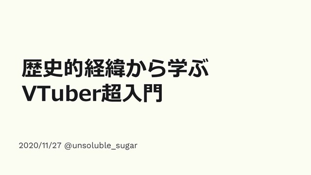 歴史的経緯から学ぶ VTuber超入門 2020/11/27 @unsoluble_sugar
