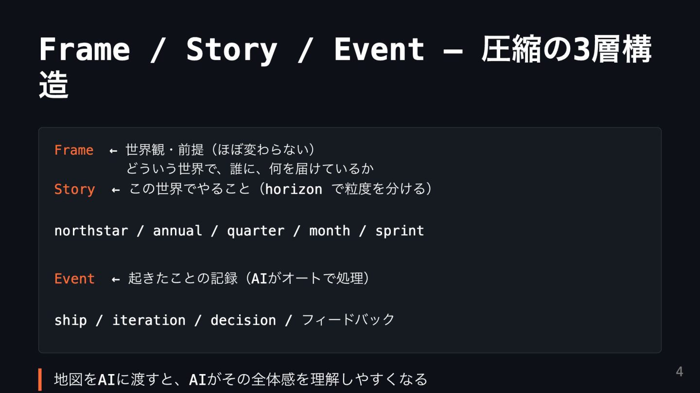 Frame / Story / Event の3層構造でAIへの指示を設計する方法を5分で解説。