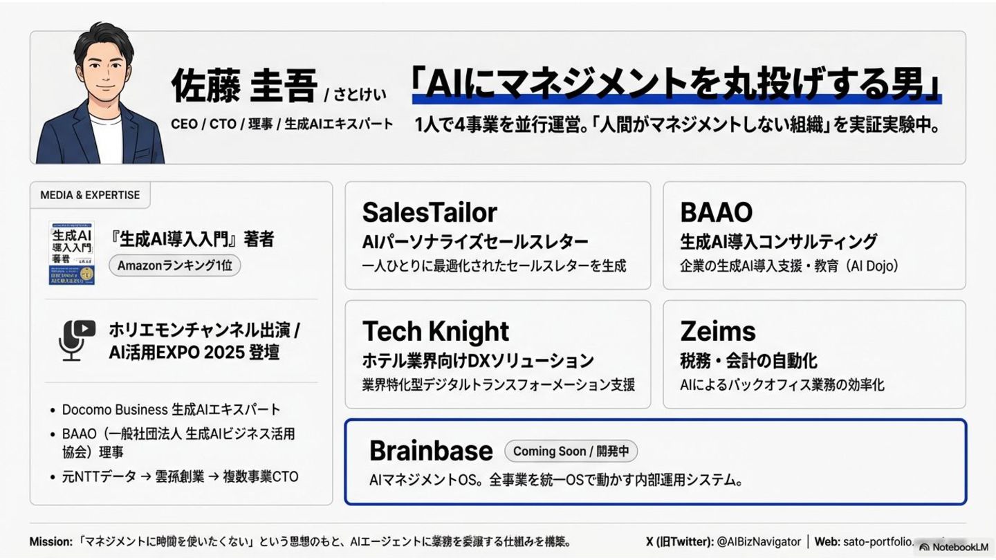 複数事業を並列で見る中で、「自分の代わりにAIが判断・実行できる範囲はどこまでか?」を1年間実験してきました。この発表では、会社を「循環」として捉え、AIを「