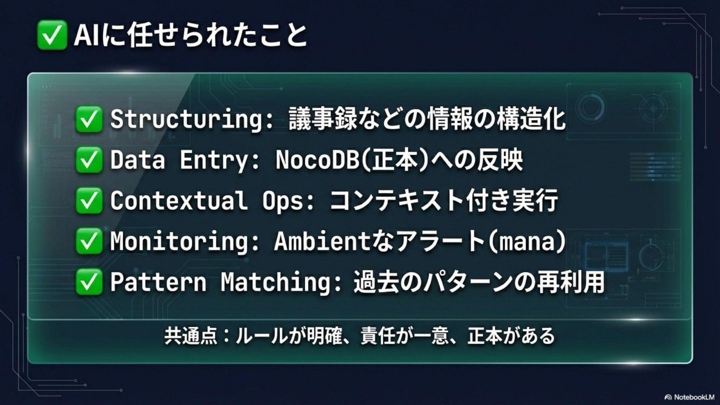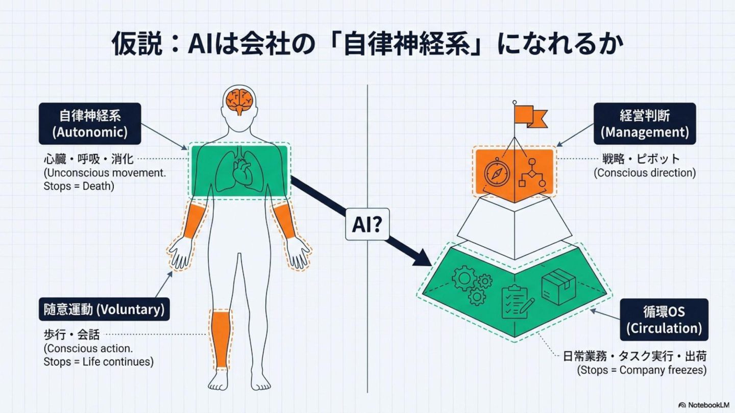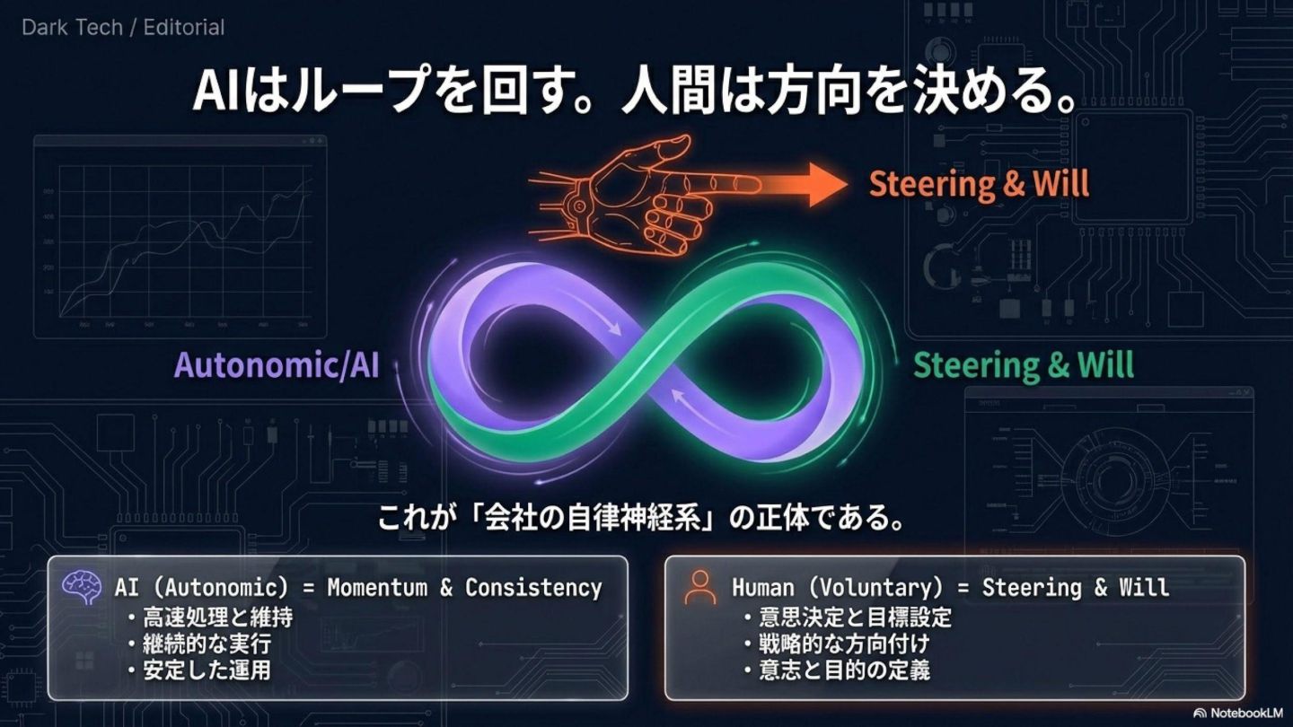 2. **AIは「自律神経系」になれる**: ループを回す / 止まりを検知 / 定型を実行