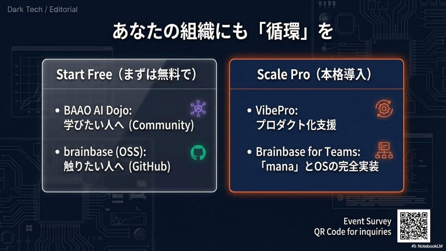 - **無料**: BAAO AI道場(LINEオープンチャット) / brainbase OSS(GitHub)