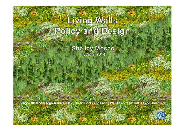 Shelley Mosco is a Research Assistant for the Sustainable Landscapes Research Group and is involved in establishing the Green Roofs and Living Walls Centre at the University of Greenwich. She is also Senior Lecturer in landscape design and GIS (Geographical Information Systems) for Landscape Planning.