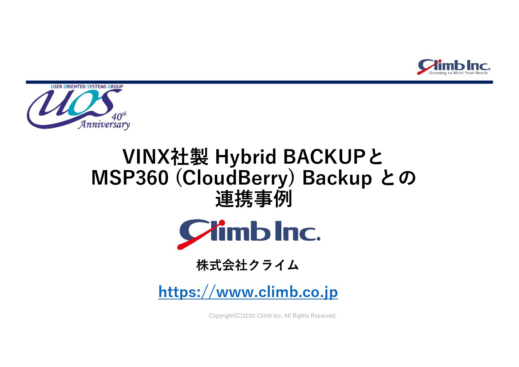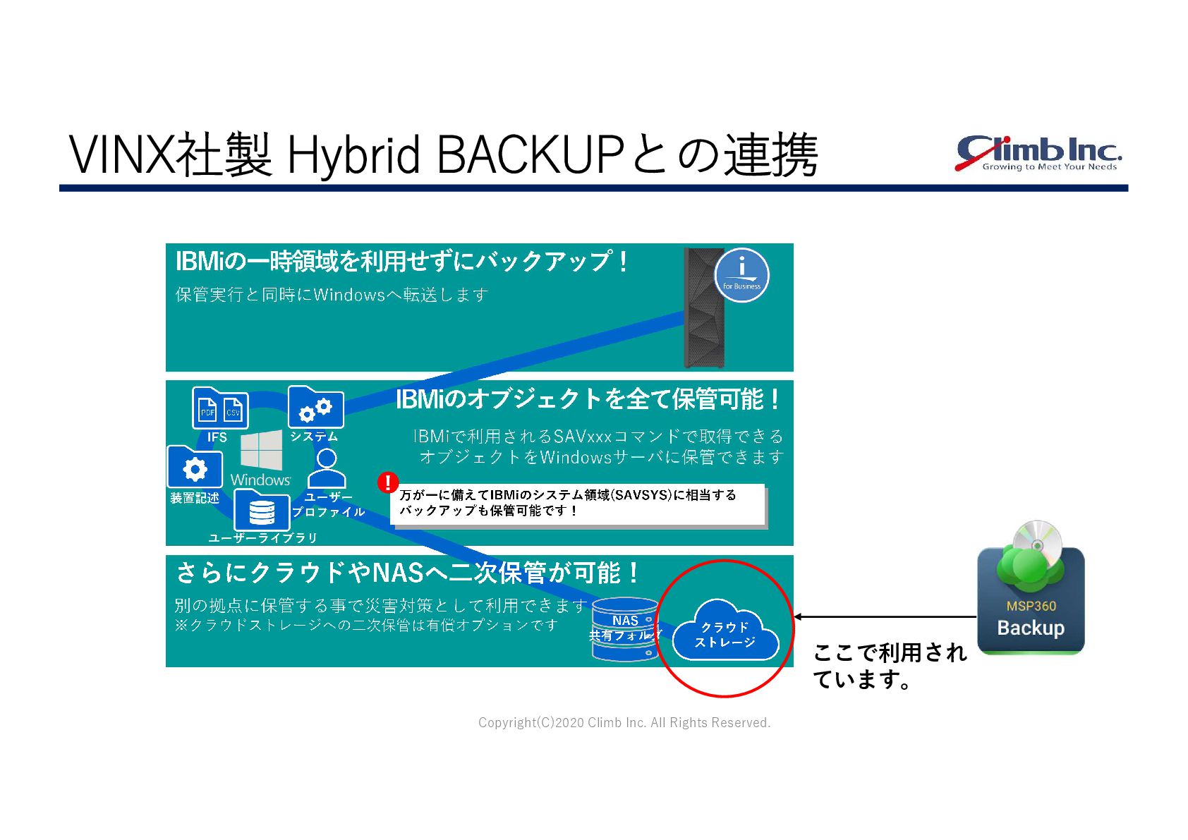 Copyright(C)2020 Climb Inc. All Rights Reserved. VINX社製 Hybrid BACKUPと MSP360