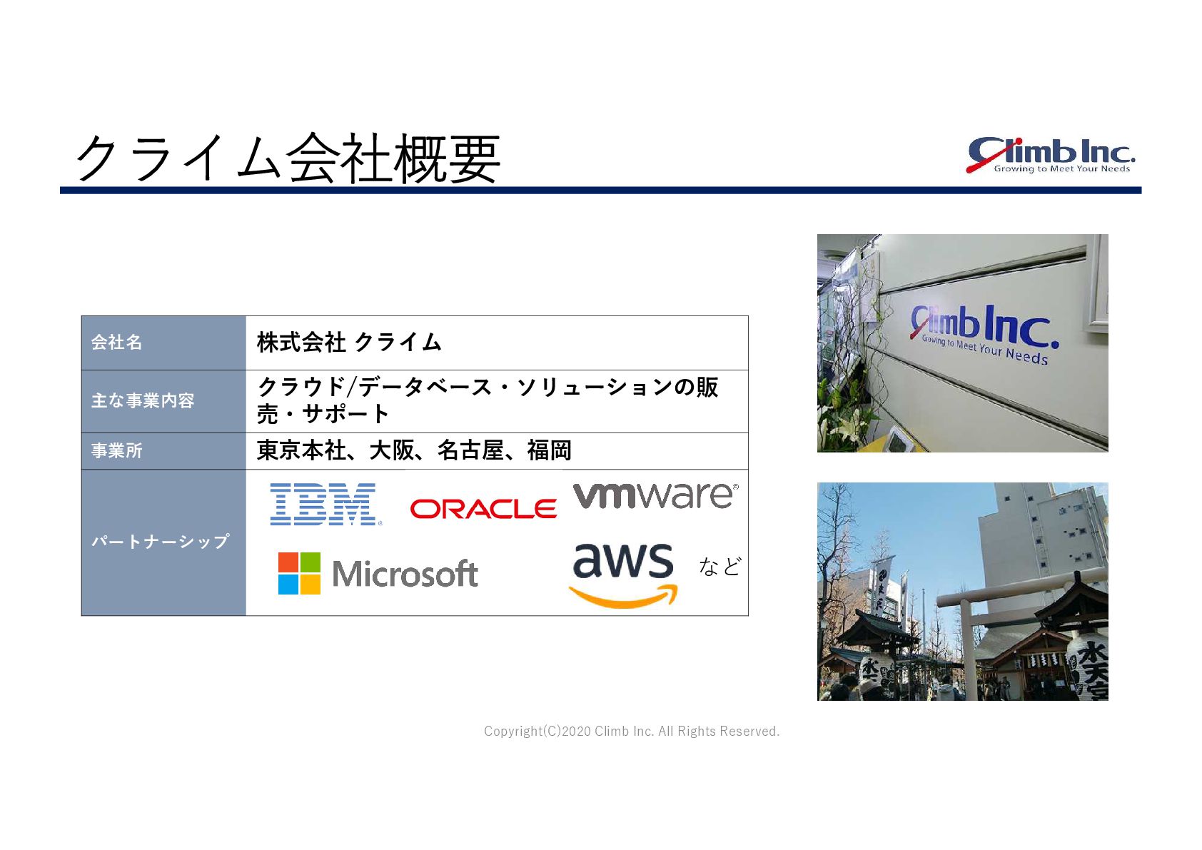 Copyright(C)2020 Climb Inc. All Rights Reserved. クライム会社概要 株式会社 クライム 会社名