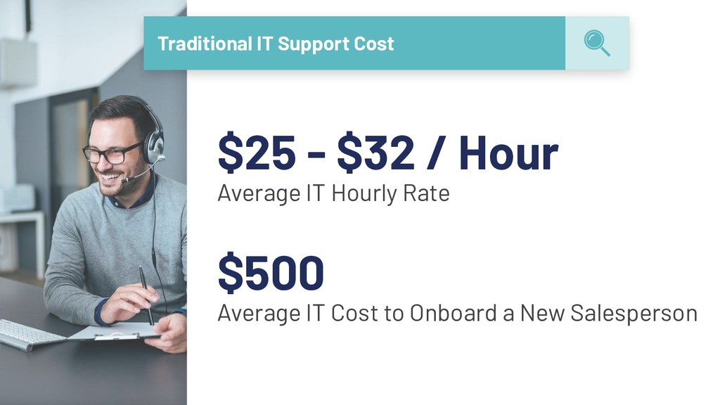 $1,900 Phone (Landline + Mobile) $480 Software CRM License $3600 Other Overhead Apps $1,000 IT Support to Implement / Train $500 Total Cost Per New Hire Annually $3,000 to $7,000