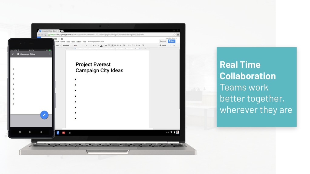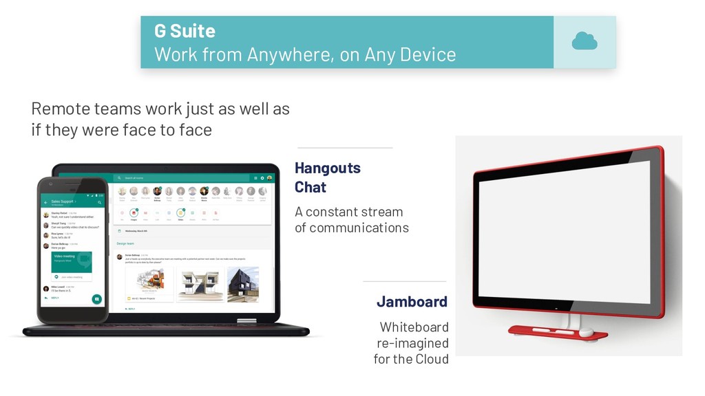 sought a productivity solution that would bolster collaboration and easily work alongside internal resources including Salesforce. Collaboration & Productivity: Creating a productivity ecosystem G Suite is used for daily work and is compatible with Salesforce, productivity manager Prodoscore, and other apps. Vonage uses in-app behavioral data to quantify productivity and integrates Cloud Natural Language to measure the effectiveness of sales messaging. Creates 20% increase in staff productivity by introducing visibility through G Suite Simplifies management visibility of daily activity to help ensure consistent G Suite adoption and use Builds team confidence with Cloud Natural Language to focus on sales opportunities and consistent messaging "Using Cloud Natural Language, we can understand what sales reps are saying, doing, and promoting much faster and clearly than before, which helps people and teams perform better." Reggie Scales, SVP Mid Market and Enterprise Sales, Vonage In partnership with: