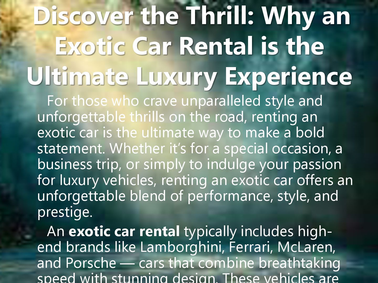 Experience luxury on wheels with Upscale XP Exotics. Our exotic car rental service offers top-tier supercars and luxury vehicles for unforgettable moments. Whether it’s a special event, a business trip, or just because—you deserve to drive the best. Explore our stunning fleet and turn every drive into a statement of style, speed, and sophistication. Reserve your dream car today! https://upscalexpexotics.com