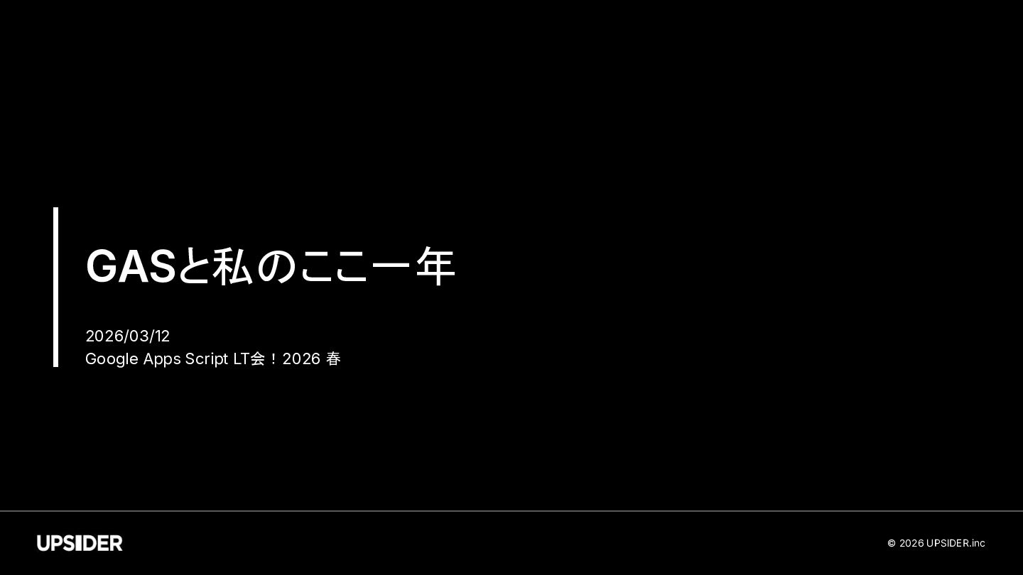 © 2026 UPSIDER.inc GASと私のここ一年 2026/03/12 Google Apps Script LT会!2026 春