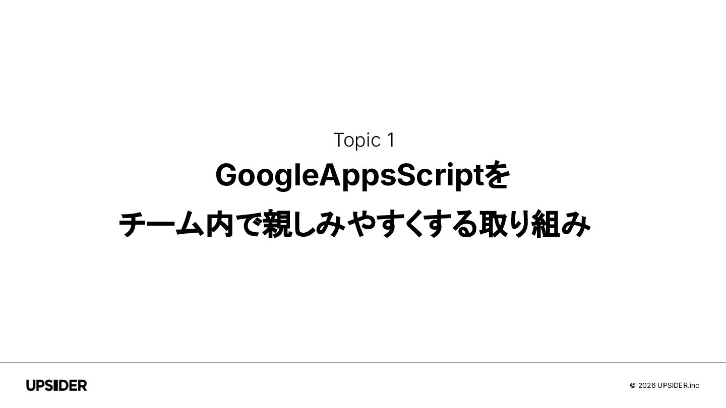 © 2026 UPSIDER.inc Topic 1 GoogleAppsScriptを チーム内で親しみやすくする取り組み