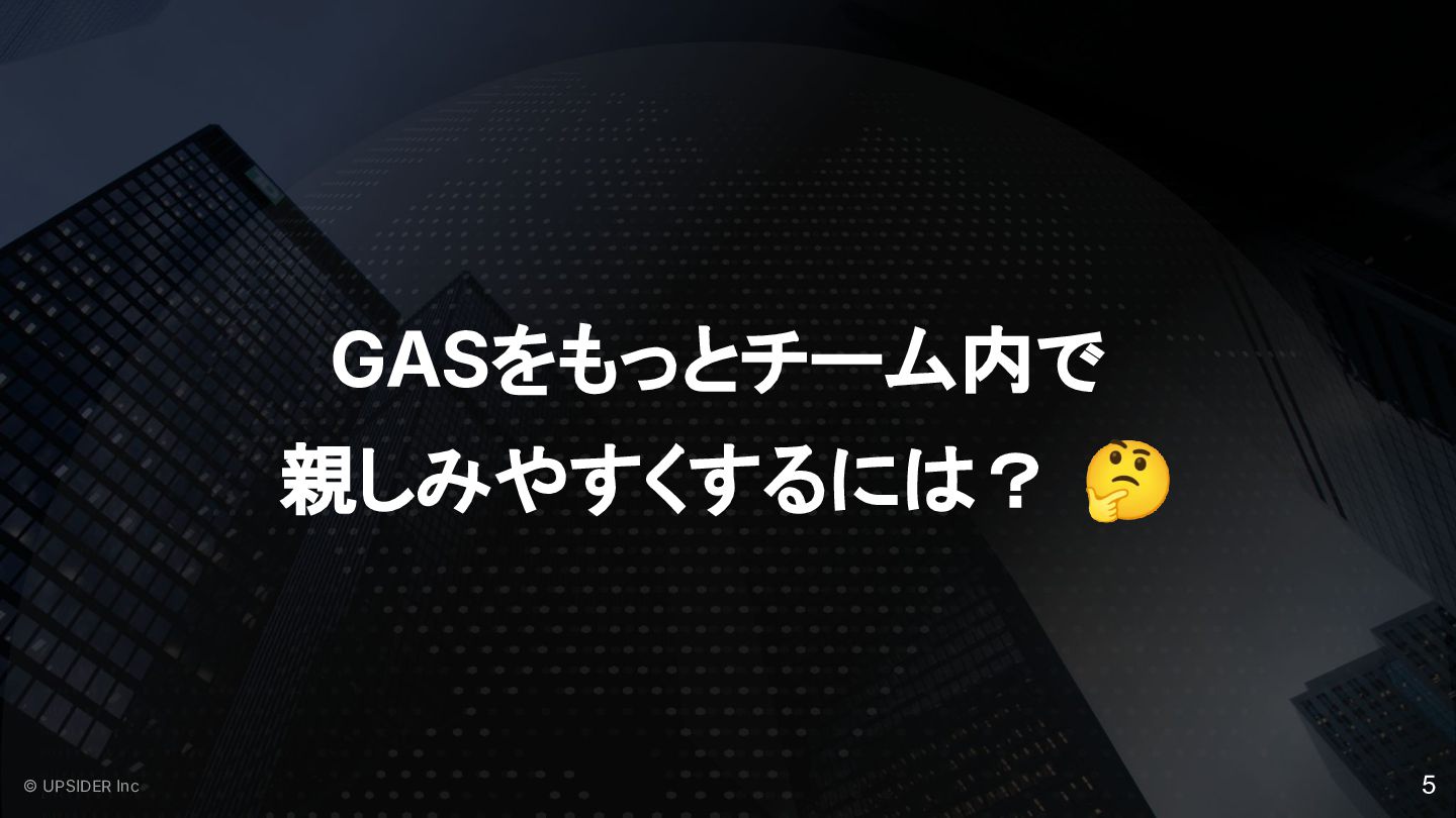 GASをもっとチーム内で 親しみやすくするには? 🤔 5 © UPSIDER Inc