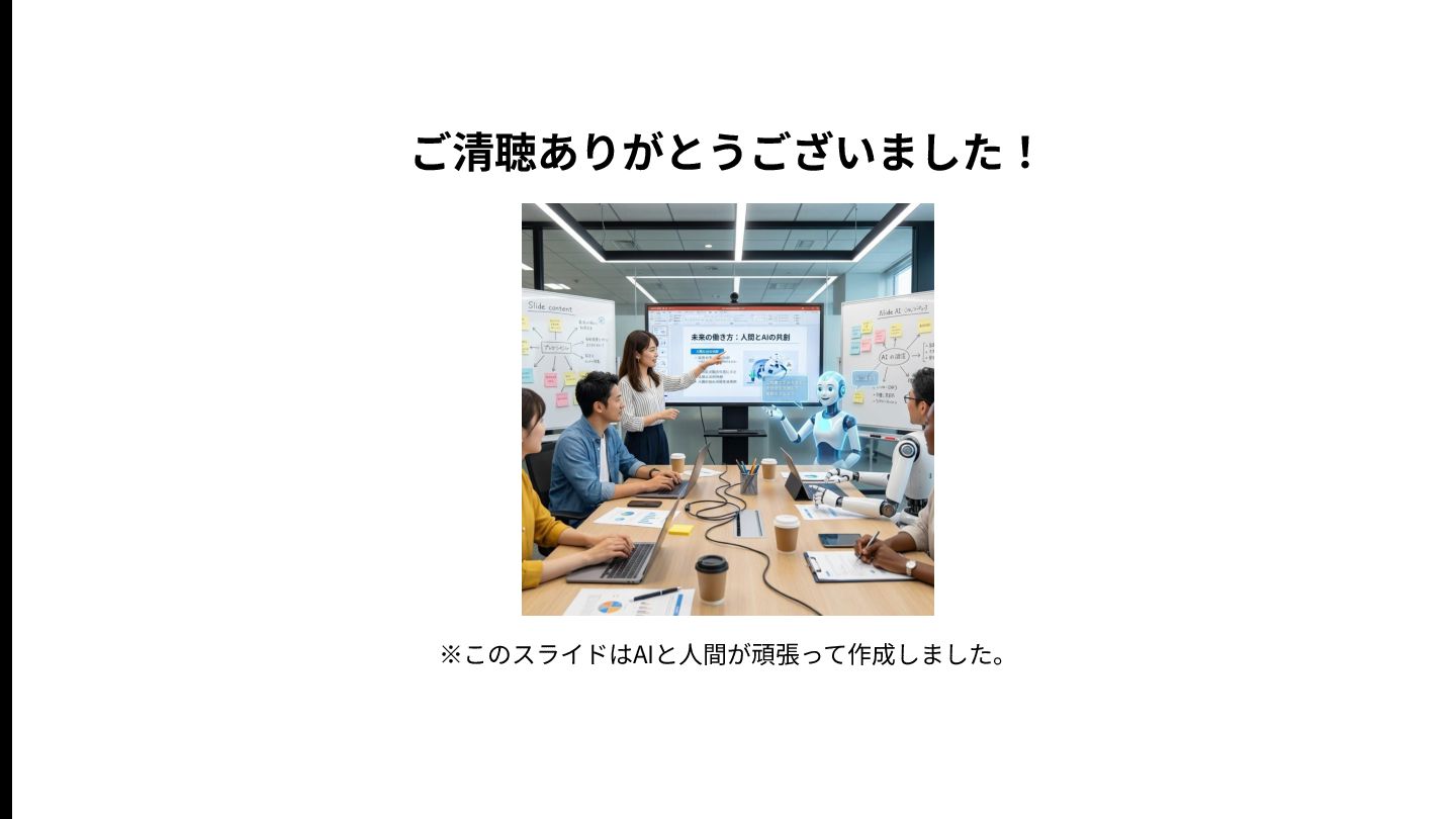 ご清聴ありがとうございました! ※このスライドはAIと⼈間が頑張って作成しました。