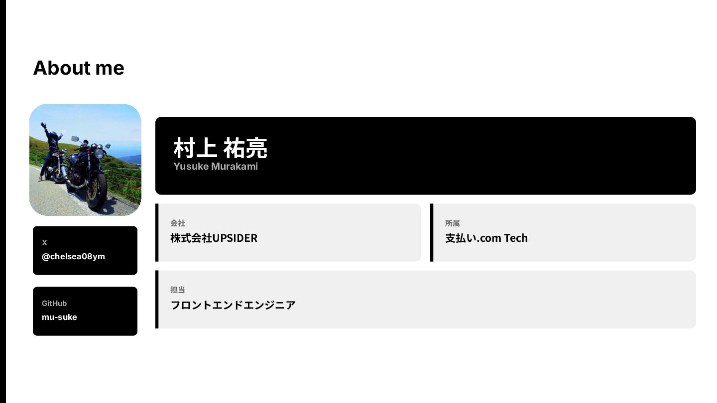 所属 ⽀払い.com Tech 担当 フロントエンドエンジニア About me