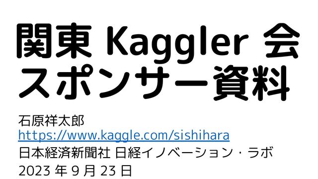 石原祥太郎 https://www.kaggle.com/sishihara 日本経済新聞社 日経イノベーション・ラボ 2023 年 9 月 23 日