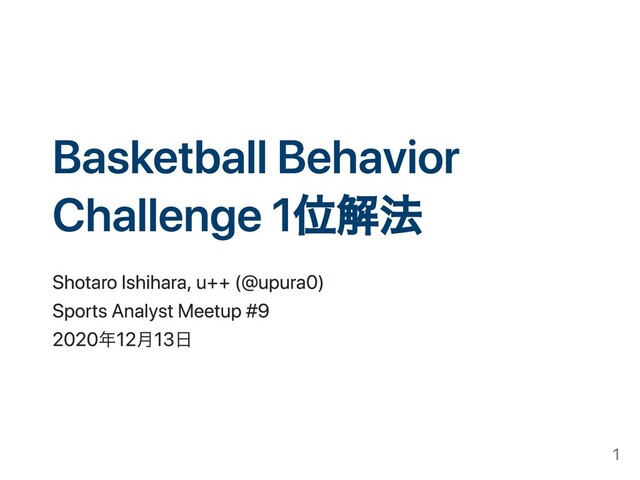 Basketball Behavior Challenge 1位解法 Shotaro Ishihara, u++ (@upura0) Sports Analyst