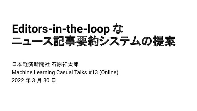 Canny, and Marti A. Hearst. 2020. “The Summary Loop: Learning to Write Abstractive Summaries Without Examples.” In Proceedings of the 58th Annual Meeting of the Association for Computational Linguistics, 5135–50. • [Murao 19] Murao, Kazuma, Ken Kobayashi, Hayato Kobayashi, Taichi Yatsuka, Takeshi Masuyama, Tatsuru Higurashi, and Yoshimune Tabuchi. 2019. “A Case Study on Neural Headline Generation for Editing Support.” In Proceedings of the 2019 Conference of the North American Chapter of the Association for Computational Linguistics: Human Language Technologies, Volume 2 (Industry Papers), 73–82. • [Stiennon 20] Stiennon, Nisan, Long Ouyang, Jeffrey Wu, Daniel Ziegler, Ryan Lowe, Chelsea Voss, Alec Radford, Dario Amodei, and Paul F. Christiano. 2020. “Learning to Summarize with Human Feedback.” Advances in Neural Information Processing Systems 33: 3008–21. • [Yamada 21] Yamada, Kosuke, Yuta Hitomi, Hideaki Tamori, Ryohei Sasano, Naoaki Okazaki, Kentaro Inui, and Koichi Takeda. 2021. “Transformer-Based Lexically Constrained Headline Generation.” In Proceedings of the 2021 Conference on Empirical Methods in Natural Language Processing, 4085–90. • [石原 21] 石原慧人, 石原祥太郎, 白井穂乃 (2021). BertSumを用いた日本語ニュース記事の抽象型要約手法の検討. 2021年 度人工知能学会全国大会(第35回)論文集. • [田中 16] 田中駿, 笹野遼平, 高村大也, 奥村学. 2016. “要約長,文長,文数制約付きニュース記事要約.” 言語処理学会第22回 年次大会発表論文集.