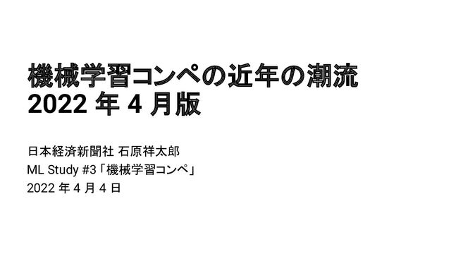 機械学習コンペの近年の潮流 2022 年 4 月版 日本経済新聞社 石原祥太郎 ML Study #3