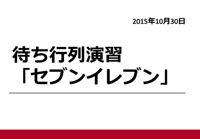 待ち⾏列演習 「セブンイレブン」 2015年10⽉30⽇