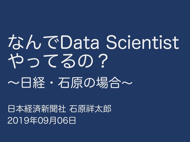 ͳΜͰ%BUB4DJFOUJTU ͬͯΔͷʁ ʙܦɾੴݪͷ߹ʙ ຊܦࡁ৽ฉࣾ ੴݪↅଠ ݄