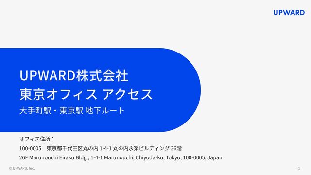 © UPWARD, Inc. 1 UPWARD株式会社 東京オフィス アクセス ⼤⼿町駅‧東京駅 地下ルート オフィス住所: