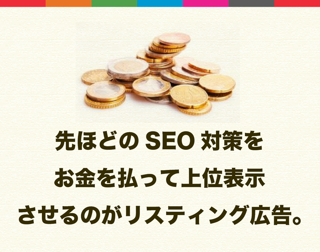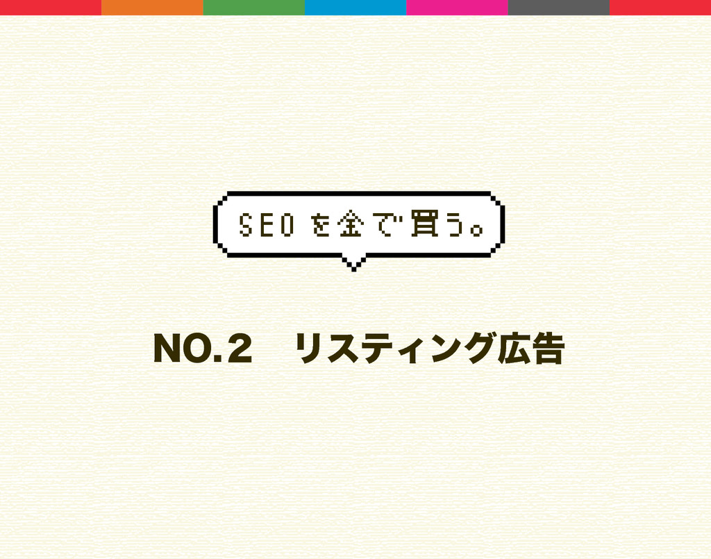ࠓճɺ͓͑͢Δͷ͜ͷ̓ͭɻ /0ɹ4&0 ରࡦ /0̎ɹϦεςΟϯάࠂ /0̏ɹόφʔࠂ /0̐ɹϒϩά /0̑ɹιʔγϟϧϝσΟΞ /0̒ɹγϣοϐϯάϞʔϧ /0̓ɹϝʔϧϚΨδϯ