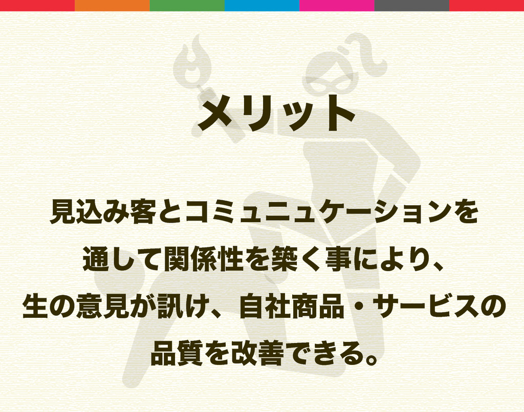 ϝϦοτ ݟࠐΈ٬ͱίϛϡχϡέʔγϣϯΛ ௨ͯؔ͠ੑΛங͘ࣄʹΑΓɺ ੜͷҙݟ͕㘤͚ɺࣗࣾɾαʔϏεͷ ࣭ΛվળͰ͖Δɻ