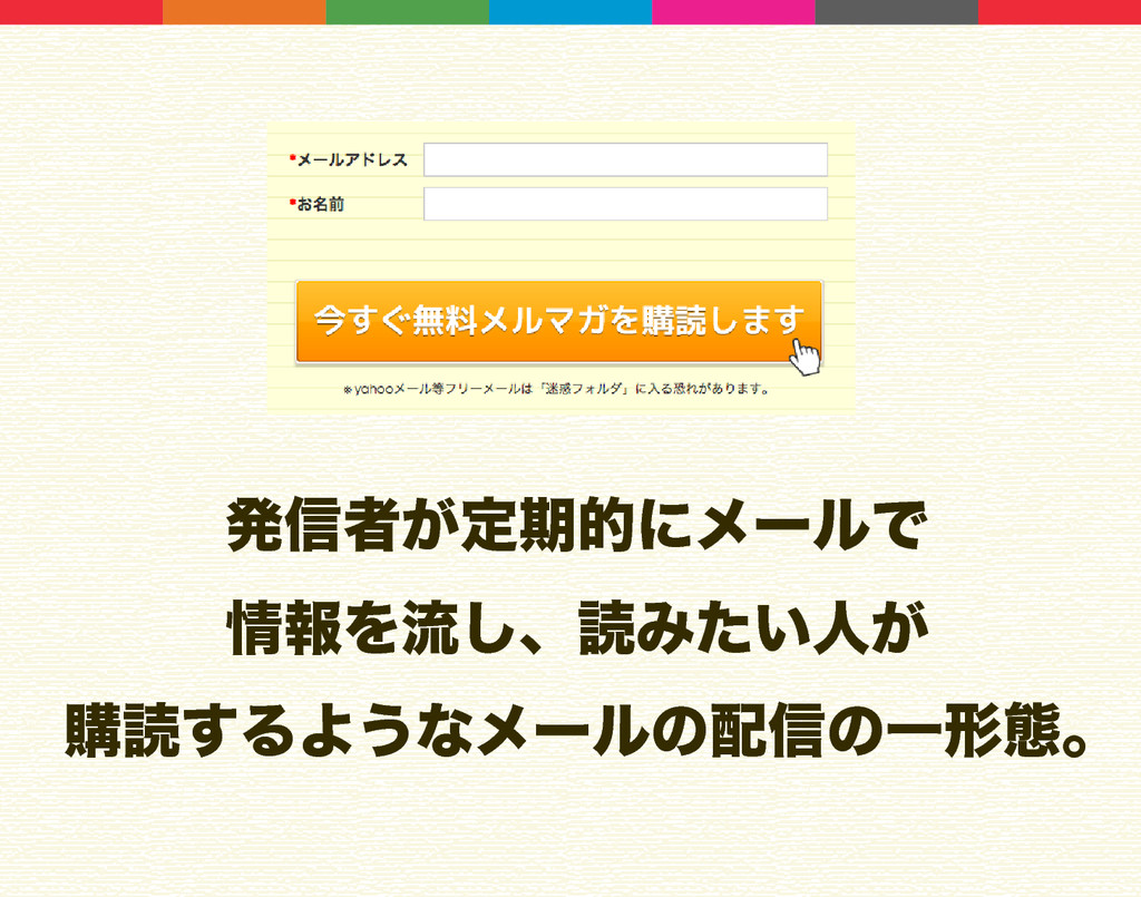 ൃ৴ऀ͕ఆظతʹϝʔϧͰ ใΛྲྀ͠ɺಡΈ͍ͨਓ͕ ߪಡ͢ΔΑ͏ͳϝʔϧͷ৴ͷҰܗଶɻ