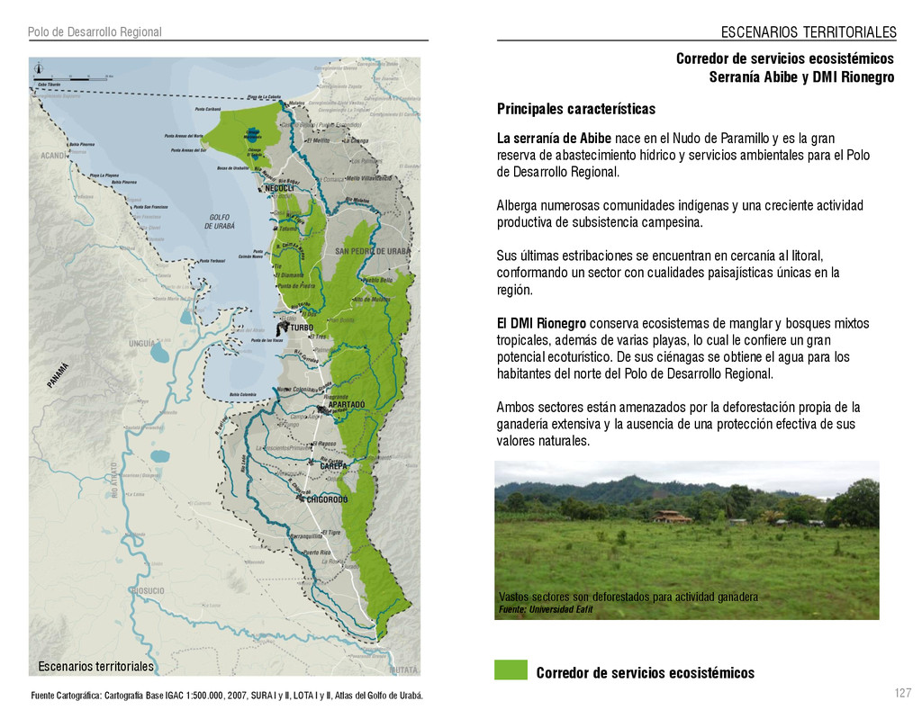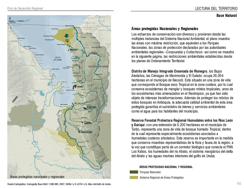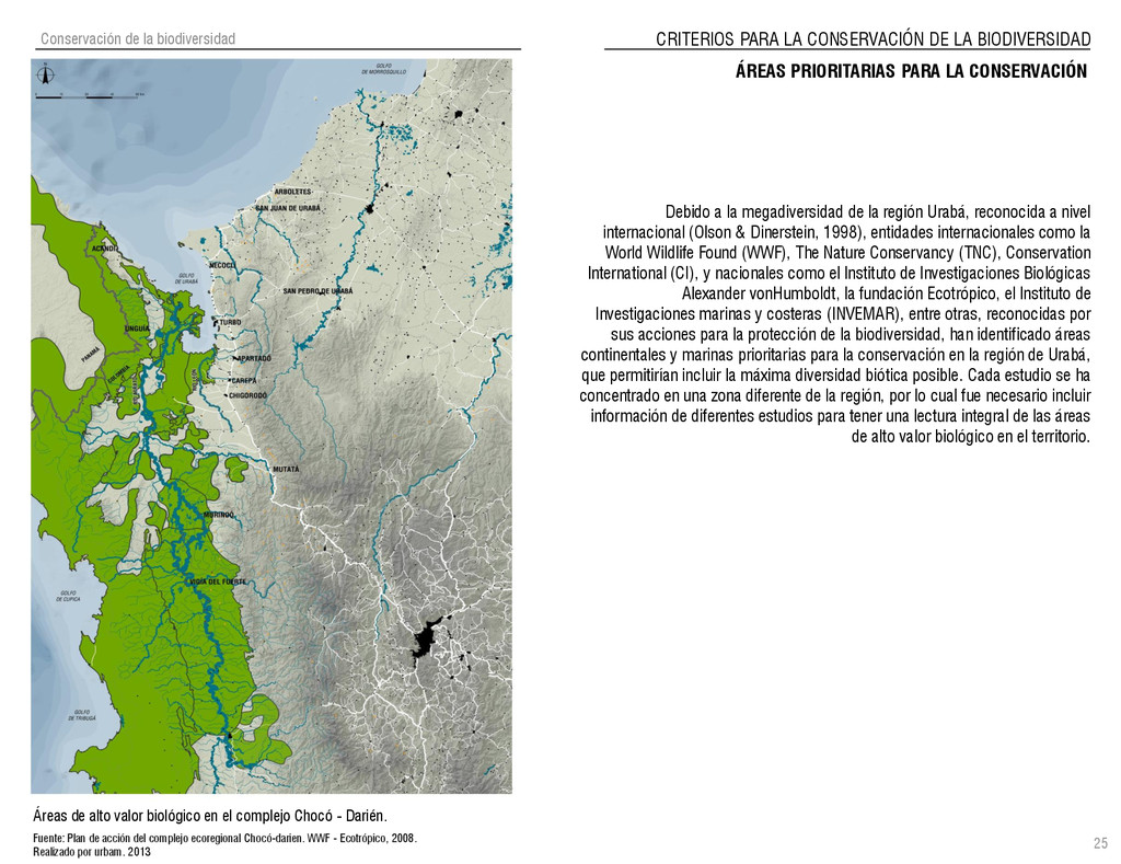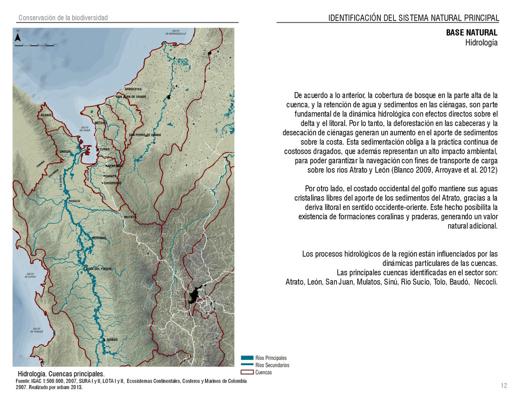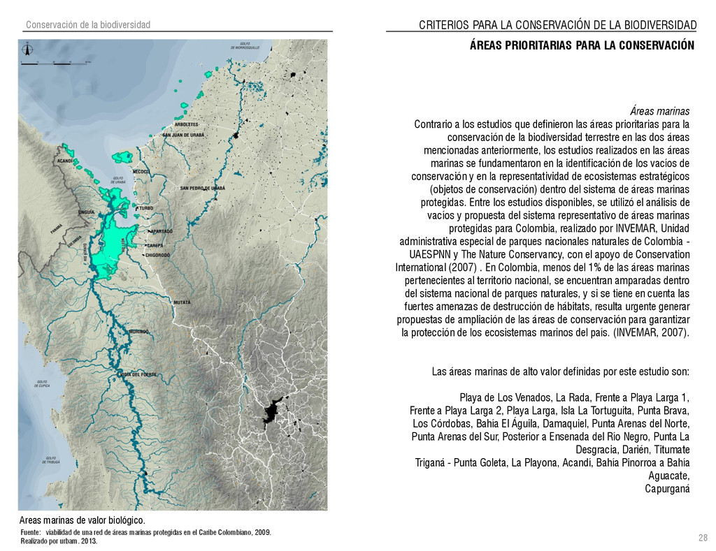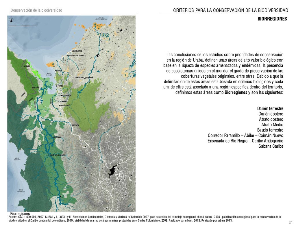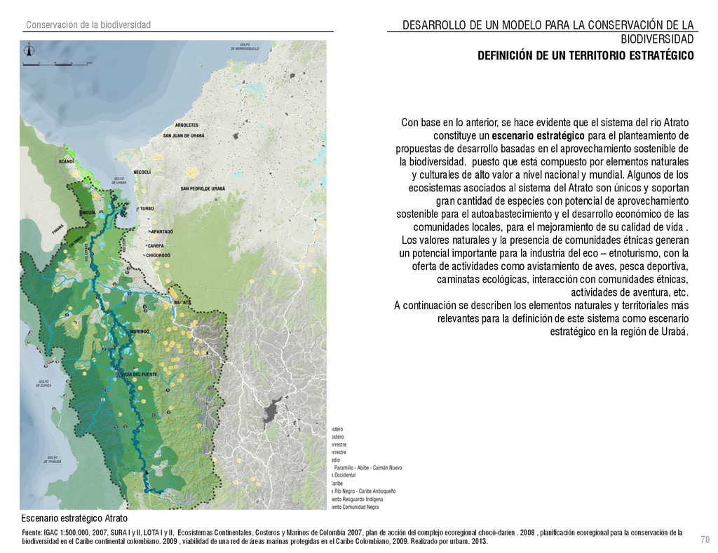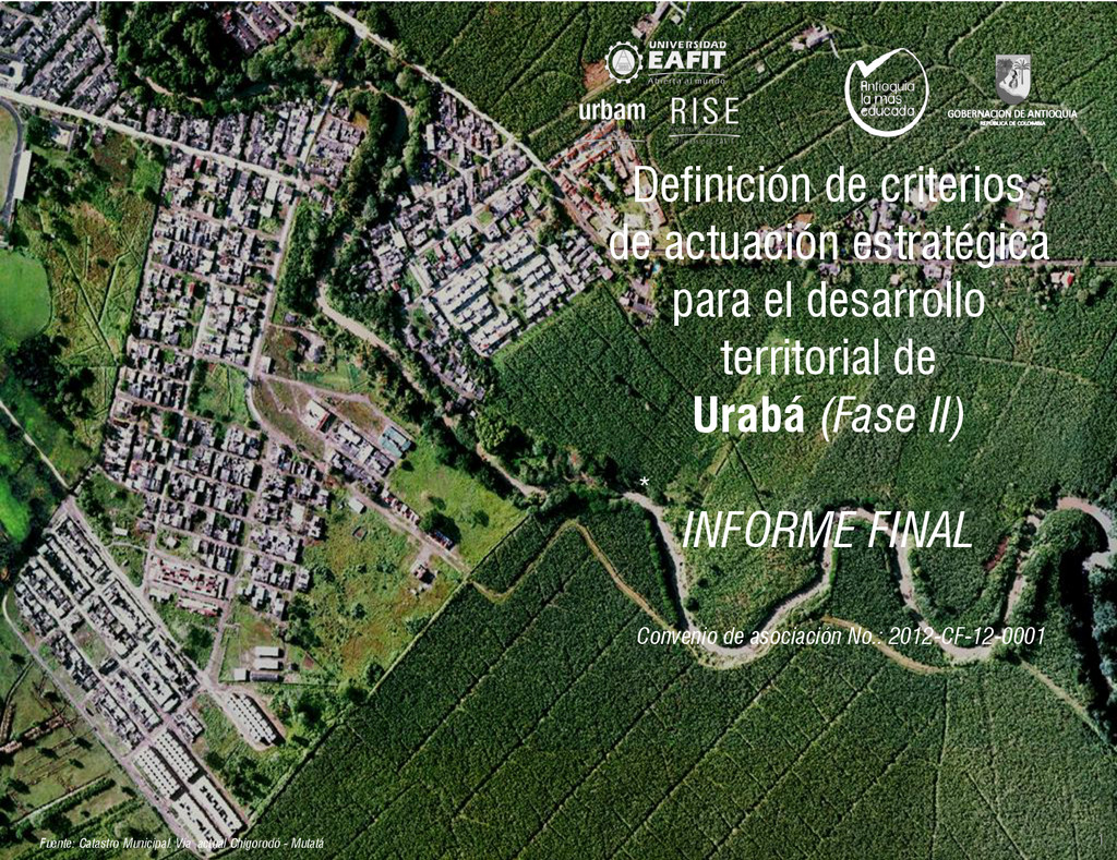 de Antioquia. 2007. Atlas del golfo de Urabá; una mirada al Caribe de Antioquia y Chocó. Instituto de Investigaciones Marinas y Costeras (INVEMAR), Unidad Administrativa especial del Sistema de Parques Nacionales Naturales (UAESPNN), The Nature Conservancy (TNC). 2007. Análisis de vacíos de conservación y propuesta del sistema representativo de áreas marinas protegidas para Colombia. INVEMAR, GOBERNACIÓN DE ANTIOQUIA, CORPOURABA, CODECHOCO. 2008. Formulación de los lineamientos y estrategias de manejo integrado de la Unidad Ambiental Costera del Darién. Editado por: A.P. Zamora, A. López y P.C. Sierra-Correa. Santa Marta. Serie de Documentos Generales INVEMAR No. 22 JIMENO, MYRIAM, SOTOMAYOR, LUCIA, VALDERRAMA, LUZ M. 1995. Chocó: Diversidad Cultural y Medio ambiente. Santafé de Bogotá: Fondo FEN Colombia. LOTA. 2011. Lineamiento de Ordenamiento Territorial de Antioquia, Comisión Tripartita. Unión de Universidades: Universidad de Antioquia, Universidad Nacional, Universidad Pontificia Bolivariana, Universidad de Medellín, Escuela de Ingeniería de Antioquia . Liu, J., Dietz, Thomas., Carpenter, S., Folke, C., Alberti, M., Redman, C.H., Schneider, S.H., Ostrom, E., Pell, A.N., Lubchenco, J., Taylor, W., Ouyang, Z., Deadman, P., Kratz, T., and W. Provencher. 2007. Coupled Human and Natural Systems. AMBIO: A Journal of the Human Environment36 (8), 639-649 Ministerio de Comercio, Industria y Turismo de Colombia. 2013. Programa de Transformación Produtiva. http://www.ptp.com.co/portal/default.aspx Página consultada por última vez el 21 de marzo de 2013. Ministerio del Medio Ambiente-MMA, Departamento Nacional de Planeación e Instituto de Investigaciones de los Recursos Biológicos “ Alexander von Humboldt” . 1995. Política Nacional de Biodiversidad. Bogotá D.C. 21 p. Municipio de San Juan de Urabá. http://sanjuandeuraba-antioquia.gov.co/nuestromunicipio.shtml?apc=mIxx-1-&m=f Página consultada por última vez el 21 de marzo de 2013. Murphy, P.G. y ; A. E. Lugo. 1986. Ecology of Tropical Dry Forest. Annual Review of Ecology and Systematics, 17: 67-88. Olson, D. Dinerstein, E. 1998. The Global 200: Priority ecoregions for global conservation. Annals of the Missouri Botanical Garden 89: 125-126 Organización de las Naciones Unidas (ONU). 2011. Protocolo de Nagoya sobre acceso a los recursos genéticos y participación justa y equitativa en los beneficios que se deriven de su utilización. Convenio sobre la diversidad biológica. O´Dea, A. Rodríguez, F. De García, C. Coates, A. 2007. Patrimonio paleontológico. La paleontología marina en el Istmo de Panamá. Instituto Smithsonian de Investigaciones tropicales. Canto Rodado 2:149-179 Planes de Ordenamiento Territorial, Municipios de Apartadó, Arboletes, Carepa, Chigorodó, Murindó, Mutatá, Necoclí, San Juan de Urabá, San Pedro de Urabá y Vigía del Fuerte.1999 – 2010. Programa de las naciones unidas para el medio ambiente (PNUMA). 2007. GEO-4 Boletín Informativo 2; Bienestar humano y el medio ambiente. http://www.pnuma.org/GEO4/documentos/01ambiente.pdf Prûssmann Uribe, J. 2011. Nuevos elementos para el manejo integrado de la Región de Urabá, Costa Caribe Colombiana, Tesis Universidad Eafit. Sánchez-Azofeifa, G.A., Quesada, M., Rodríguez, J.P., Nassar, J.M., Stoner, K.E., Castillo, A., Garvin, T., Zent, E., Calvo-Alvarado, J.C., . Kalacska, M., Margaret, E.R., Fajardo, L., Gamon, J.A., y P. Cuevas-Reyes. 2005. Research priorities for Neotropical dry forests. Biotropica 37 (4), 477–485 SURA, Sistema Urbano Regional de Antioquia, Universidad Nacional de Colombia, Sede Medellín, Gobernación de Antioquia, 2010. Restrepo, J. D., Kjerfve, B., 2000. Water and sediment discharges from the western slopes of the Colombian Andes with focus on Rio San Juan. Journal of Geology, 108 (1):17-33. Secretaría de Minas. 2012. Títulos mineros, solicitudes y Legalizaciones. UNAM-. 2011. Arrecifes. Universidad Nacional Autónoma de México www.puma.unam.mx/festival/index.php/arrecifes Universidad Eafit- Gobernación de Antioquia. 2011.Estructura de la propiedad de la tierra en Antioquia. Universidad Nacional. 2006. Impactos ambientales y territoriales de las dinámicas poblacionales en el Urabá antioqueño. Participación de estudiantes de la maestría estudios urbano-regionales bajo la coordinación del profesor Luís Carlos Agudelo, adscrito a la Facultad de Arquitectura de la UN Medellín. Urrego, L. et al. 2010. Distribución, composición y estructura de los manglares en el golfo de Urabá en Proyecto Expedición Estuarina Golfo de Urabá, fase 1. WWF. 2008. Plan de Acción del Complejo Ecorregional Chocó-Darién. 190