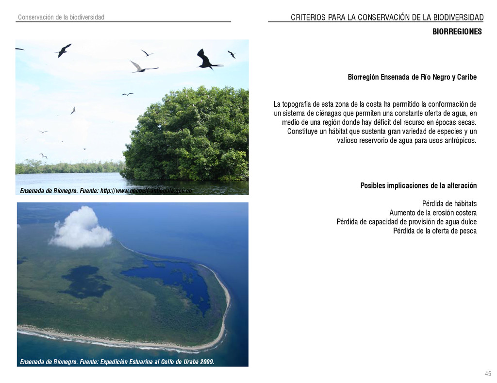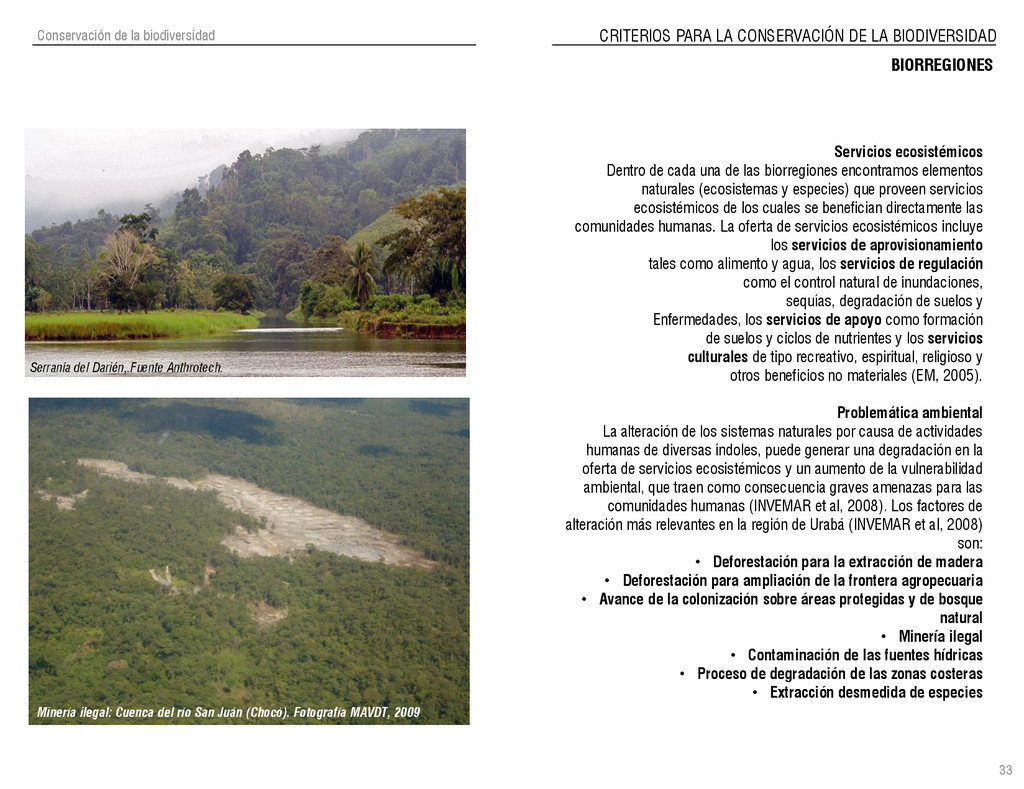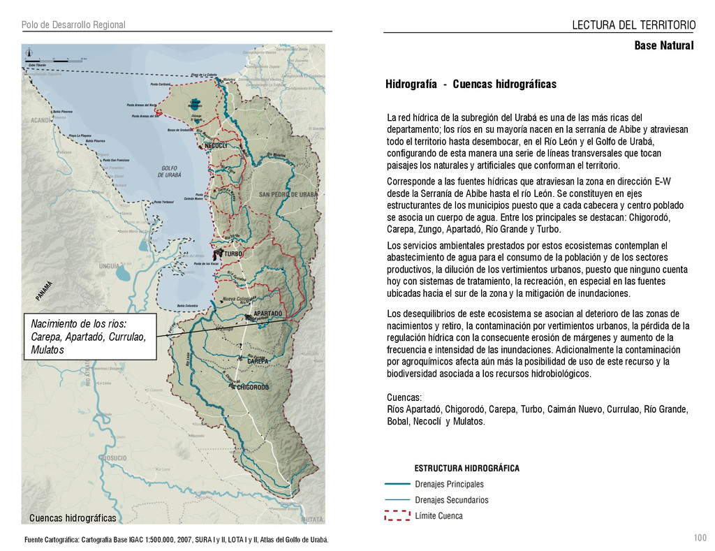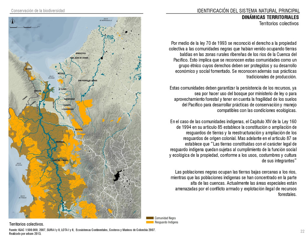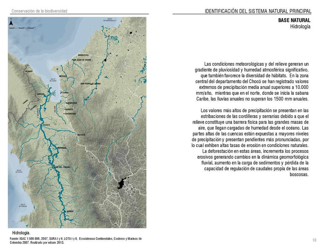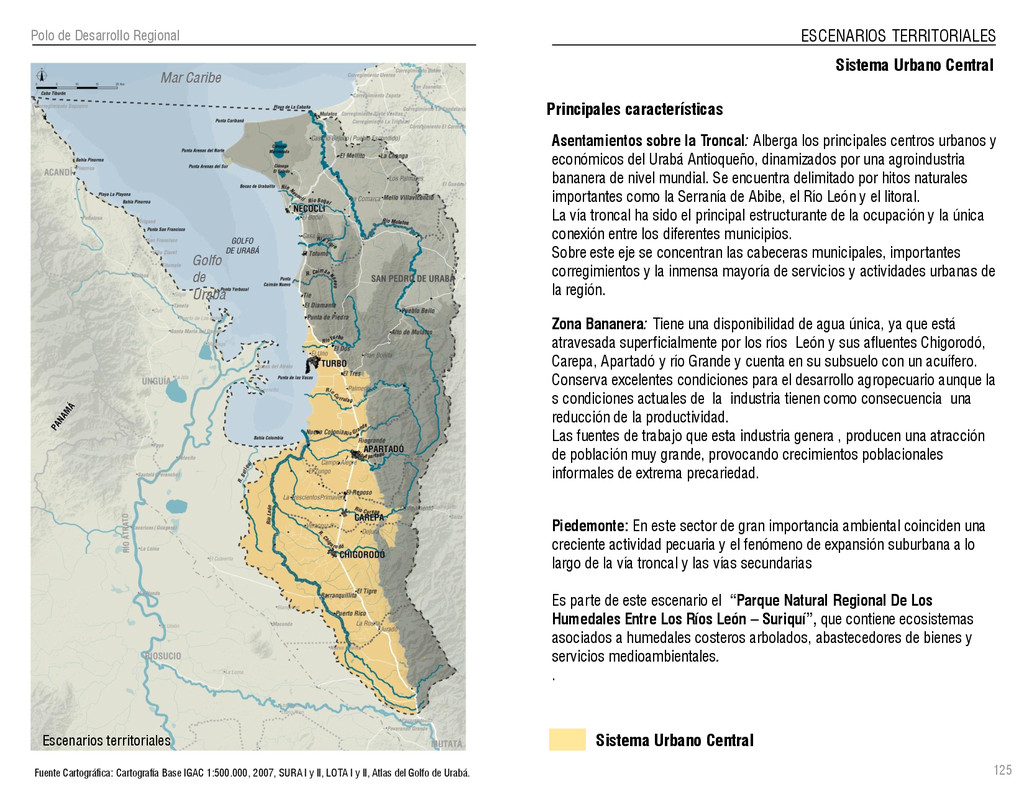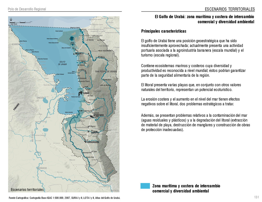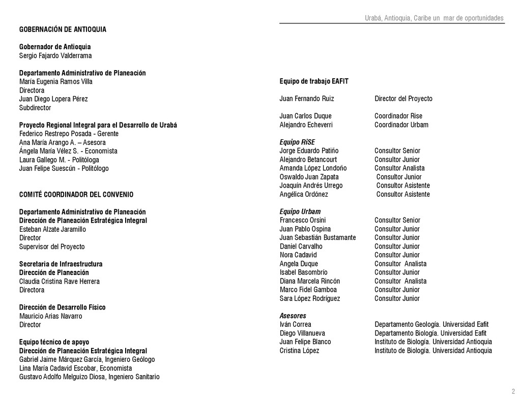 de Antioquia. 2007. Atlas del golfo de Urabá; una mirada al Caribe de Antioquia y Chocó. Instituto de Investigaciones Marinas y Costeras (INVEMAR), Unidad Administrativa especial del Sistema de Parques Nacionales Naturales (UAESPNN), The Nature Conservancy (TNC). 2007. Análisis de vacíos de conservación y propuesta del sistema representativo de áreas marinas protegidas para Colombia. INVEMAR, GOBERNACIÓN DE ANTIOQUIA, CORPOURABA, CODECHOCO. 2008. Formulación de los lineamientos y estrategias de manejo integrado de la Unidad Ambiental Costera del Darién. Editado por: A.P. Zamora, A. López y P.C. Sierra-Correa. Santa Marta. Serie de Documentos Generales INVEMAR No. 22 JIMENO, MYRIAM, SOTOMAYOR, LUCIA, VALDERRAMA, LUZ M. 1995. Chocó: Diversidad Cultural y Medio ambiente. Santafé de Bogotá: Fondo FEN Colombia. LOTA. 2011. Lineamiento de Ordenamiento Territorial de Antioquia, Comisión Tripartita. Unión de Universidades: Universidad de Antioquia, Universidad Nacional, Universidad Pontificia Bolivariana, Universidad de Medellín, Escuela de Ingeniería de Antioquia . Liu, J., Dietz, Thomas., Carpenter, S., Folke, C., Alberti, M., Redman, C.H., Schneider, S.H., Ostrom, E., Pell, A.N., Lubchenco, J., Taylor, W., Ouyang, Z., Deadman, P., Kratz, T., and W. Provencher. 2007. Coupled Human and Natural Systems. AMBIO: A Journal of the Human Environment36 (8), 639-649 Ministerio de Comercio, Industria y Turismo de Colombia. 2013. Programa de Transformación Produtiva. http://www.ptp.com.co/portal/default.aspx Página consultada por última vez el 21 de marzo de 2013. Ministerio del Medio Ambiente-MMA, Departamento Nacional de Planeación e Instituto de Investigaciones de los Recursos Biológicos “ Alexander von Humboldt” . 1995. Política Nacional de Biodiversidad. Bogotá D.C. 21 p. Municipio de San Juan de Urabá. http://sanjuandeuraba-antioquia.gov.co/nuestromunicipio.shtml?apc=mIxx-1-&m=f Página consultada por última vez el 21 de marzo de 2013. Murphy, P.G. y ; A. E. Lugo. 1986. Ecology of Tropical Dry Forest. Annual Review of Ecology and Systematics, 17: 67-88. Olson, D. Dinerstein, E. 1998. The Global 200: Priority ecoregions for global conservation. Annals of the Missouri Botanical Garden 89: 125-126 Organización de las Naciones Unidas (ONU). 2011. Protocolo de Nagoya sobre acceso a los recursos genéticos y participación justa y equitativa en los beneficios que se deriven de su utilización. Convenio sobre la diversidad biológica. O´Dea, A. Rodríguez, F. De García, C. Coates, A. 2007. Patrimonio paleontológico. La paleontología marina en el Istmo de Panamá. Instituto Smithsonian de Investigaciones tropicales. Canto Rodado 2:149-179 Planes de Ordenamiento Territorial, Municipios de Apartadó, Arboletes, Carepa, Chigorodó, Murindó, Mutatá, Necoclí, San Juan de Urabá, San Pedro de Urabá y Vigía del Fuerte.1999 – 2010. Programa de las naciones unidas para el medio ambiente (PNUMA). 2007. GEO-4 Boletín Informativo 2; Bienestar humano y el medio ambiente. http://www.pnuma.org/GEO4/documentos/01ambiente.pdf Prûssmann Uribe, J. 2011. Nuevos elementos para el manejo integrado de la Región de Urabá, Costa Caribe Colombiana, Tesis Universidad Eafit. Sánchez-Azofeifa, G.A., Quesada, M., Rodríguez, J.P., Nassar, J.M., Stoner, K.E., Castillo, A., Garvin, T., Zent, E., Calvo-Alvarado, J.C., . Kalacska, M., Margaret, E.R., Fajardo, L., Gamon, J.A., y P. Cuevas-Reyes. 2005. Research priorities for Neotropical dry forests. Biotropica 37 (4), 477–485 SURA, Sistema Urbano Regional de Antioquia, Universidad Nacional de Colombia, Sede Medellín, Gobernación de Antioquia, 2010. Restrepo, J. D., Kjerfve, B., 2000. Water and sediment discharges from the western slopes of the Colombian Andes with focus on Rio San Juan. Journal of Geology, 108 (1):17-33. Secretaría de Minas. 2012. Títulos mineros, solicitudes y Legalizaciones. UNAM-. 2011. Arrecifes. Universidad Nacional Autónoma de México www.puma.unam.mx/festival/index.php/arrecifes Universidad Eafit- Gobernación de Antioquia. 2011.Estructura de la propiedad de la tierra en Antioquia. Universidad Nacional. 2006. Impactos ambientales y territoriales de las dinámicas poblacionales en el Urabá antioqueño. Participación de estudiantes de la maestría estudios urbano-regionales bajo la coordinación del profesor Luís Carlos Agudelo, adscrito a la Facultad de Arquitectura de la UN Medellín. Urrego, L. et al. 2010. Distribución, composición y estructura de los manglares en el golfo de Urabá en Proyecto Expedición Estuarina Golfo de Urabá, fase 1. WWF. 2008. Plan de Acción del Complejo Ecorregional Chocó-Darién. 190