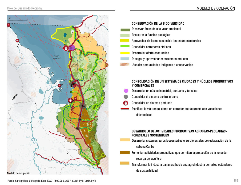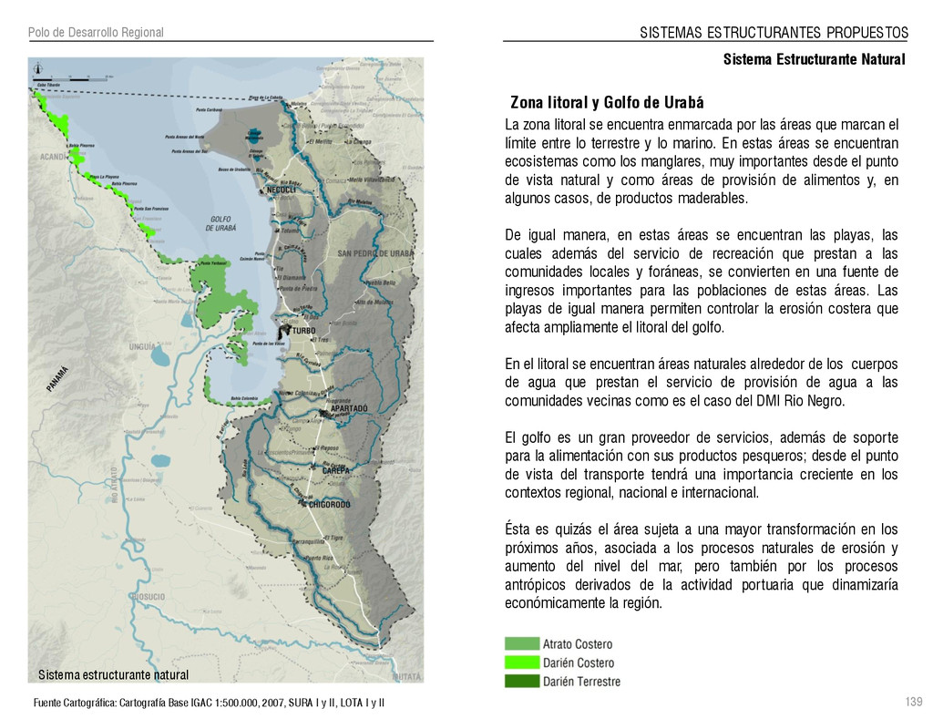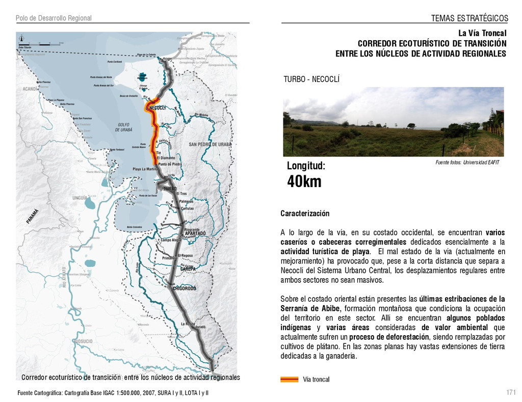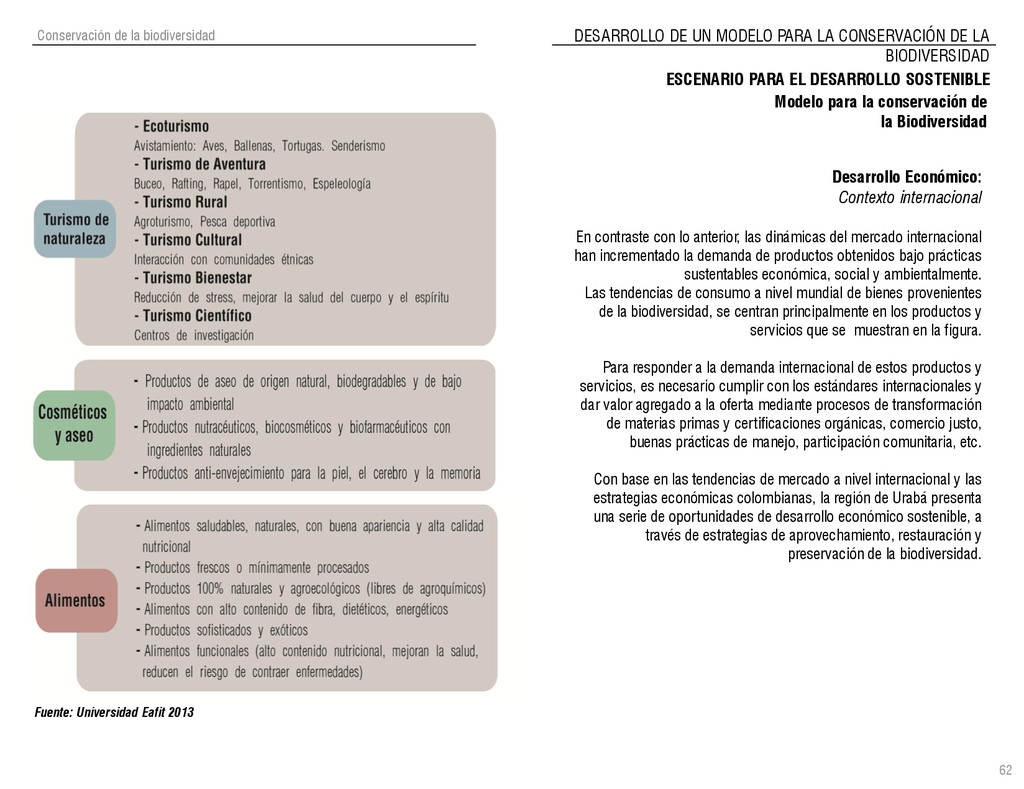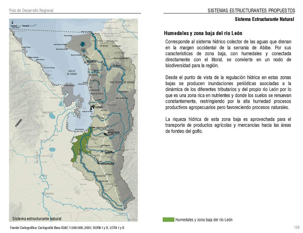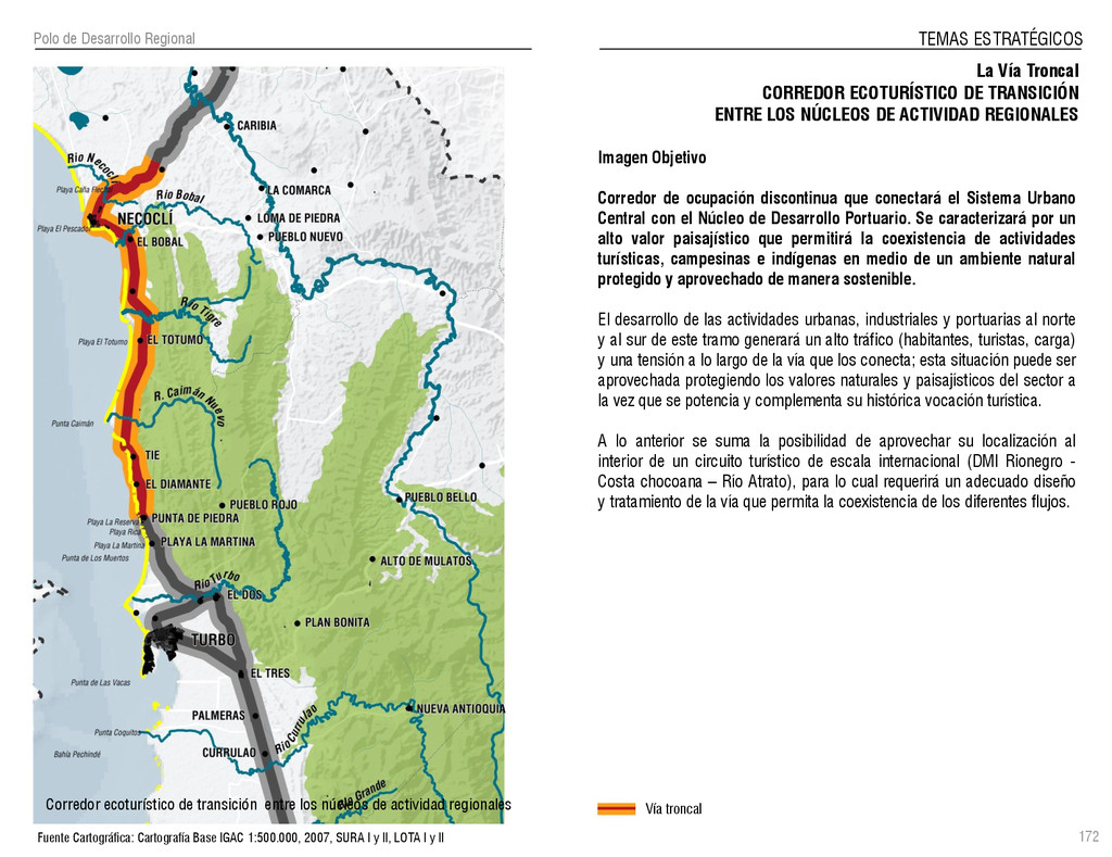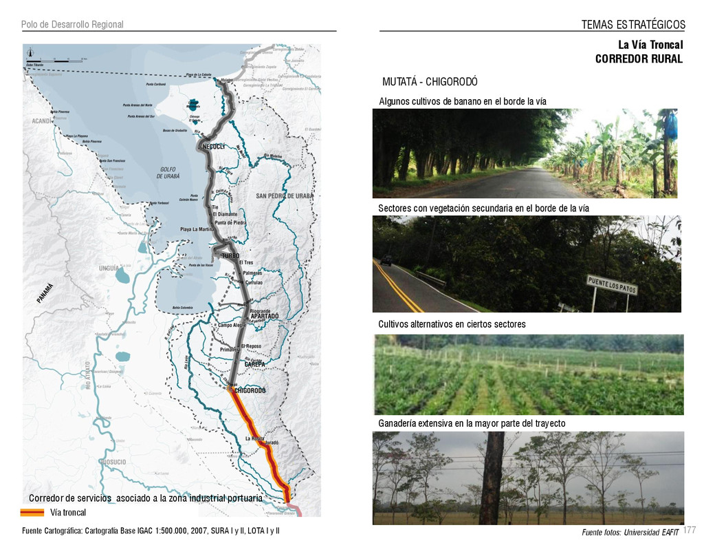 de Antioquia. 2007. Atlas del golfo de Urabá; una mirada al Caribe de Antioquia y Chocó. Instituto de Investigaciones Marinas y Costeras (INVEMAR), Unidad Administrativa especial del Sistema de Parques Nacionales Naturales (UAESPNN), The Nature Conservancy (TNC). 2007. Análisis de vacíos de conservación y propuesta del sistema representativo de áreas marinas protegidas para Colombia. INVEMAR, GOBERNACIÓN DE ANTIOQUIA, CORPOURABA, CODECHOCO. 2008. Formulación de los lineamientos y estrategias de manejo integrado de la Unidad Ambiental Costera del Darién. Editado por: A.P. Zamora, A. López y P.C. Sierra-Correa. Santa Marta. Serie de Documentos Generales INVEMAR No. 22 JIMENO, MYRIAM, SOTOMAYOR, LUCIA, VALDERRAMA, LUZ M. 1995. Chocó: Diversidad Cultural y Medio ambiente. Santafé de Bogotá: Fondo FEN Colombia. LOTA. 2011. Lineamiento de Ordenamiento Territorial de Antioquia, Comisión Tripartita. Unión de Universidades: Universidad de Antioquia, Universidad Nacional, Universidad Pontificia Bolivariana, Universidad de Medellín, Escuela de Ingeniería de Antioquia . Liu, J., Dietz, Thomas., Carpenter, S., Folke, C., Alberti, M., Redman, C.H., Schneider, S.H., Ostrom, E., Pell, A.N., Lubchenco, J., Taylor, W., Ouyang, Z., Deadman, P., Kratz, T., and W. Provencher. 2007. Coupled Human and Natural Systems. AMBIO: A Journal of the Human Environment36 (8), 639-649 Ministerio de Comercio, Industria y Turismo de Colombia. 2013. Programa de Transformación Produtiva. http://www.ptp.com.co/portal/default.aspx Página consultada por última vez el 21 de marzo de 2013. Ministerio del Medio Ambiente-MMA, Departamento Nacional de Planeación e Instituto de Investigaciones de los Recursos Biológicos “ Alexander von Humboldt” . 1995. Política Nacional de Biodiversidad. Bogotá D.C. 21 p. Municipio de San Juan de Urabá. http://sanjuandeuraba-antioquia.gov.co/nuestromunicipio.shtml?apc=mIxx-1-&m=f Página consultada por última vez el 21 de marzo de 2013. Murphy, P.G. y ; A. E. Lugo. 1986. Ecology of Tropical Dry Forest. Annual Review of Ecology and Systematics, 17: 67-88. Olson, D. Dinerstein, E. 1998. The Global 200: Priority ecoregions for global conservation. Annals of the Missouri Botanical Garden 89: 125-126 Organización de las Naciones Unidas (ONU). 2011. Protocolo de Nagoya sobre acceso a los recursos genéticos y participación justa y equitativa en los beneficios que se deriven de su utilización. Convenio sobre la diversidad biológica. O´Dea, A. Rodríguez, F. De García, C. Coates, A. 2007. Patrimonio paleontológico. La paleontología marina en el Istmo de Panamá. Instituto Smithsonian de Investigaciones tropicales. Canto Rodado 2:149-179 Planes de Ordenamiento Territorial, Municipios de Apartadó, Arboletes, Carepa, Chigorodó, Murindó, Mutatá, Necoclí, San Juan de Urabá, San Pedro de Urabá y Vigía del Fuerte.1999 – 2010. Programa de las naciones unidas para el medio ambiente (PNUMA). 2007. GEO-4 Boletín Informativo 2; Bienestar humano y el medio ambiente. http://www.pnuma.org/GEO4/documentos/01ambiente.pdf Prûssmann Uribe, J. 2011. Nuevos elementos para el manejo integrado de la Región de Urabá, Costa Caribe Colombiana, Tesis Universidad Eafit. Sánchez-Azofeifa, G.A., Quesada, M., Rodríguez, J.P., Nassar, J.M., Stoner, K.E., Castillo, A., Garvin, T., Zent, E., Calvo-Alvarado, J.C., . Kalacska, M., Margaret, E.R., Fajardo, L., Gamon, J.A., y P. Cuevas-Reyes. 2005. Research priorities for Neotropical dry forests. Biotropica 37 (4), 477–485 SURA, Sistema Urbano Regional de Antioquia, Universidad Nacional de Colombia, Sede Medellín, Gobernación de Antioquia, 2010. Restrepo, J. D., Kjerfve, B., 2000. Water and sediment discharges from the western slopes of the Colombian Andes with focus on Rio San Juan. Journal of Geology, 108 (1):17-33. Secretaría de Minas. 2012. Títulos mineros, solicitudes y Legalizaciones. UNAM-. 2011. Arrecifes. Universidad Nacional Autónoma de México www.puma.unam.mx/festival/index.php/arrecifes Universidad Eafit- Gobernación de Antioquia. 2011.Estructura de la propiedad de la tierra en Antioquia. Universidad Nacional. 2006. Impactos ambientales y territoriales de las dinámicas poblacionales en el Urabá antioqueño. Participación de estudiantes de la maestría estudios urbano-regionales bajo la coordinación del profesor Luís Carlos Agudelo, adscrito a la Facultad de Arquitectura de la UN Medellín. Urrego, L. et al. 2010. Distribución, composición y estructura de los manglares en el golfo de Urabá en Proyecto Expedición Estuarina Golfo de Urabá, fase 1. WWF. 2008. Plan de Acción del Complejo Ecorregional Chocó-Darién. 190
