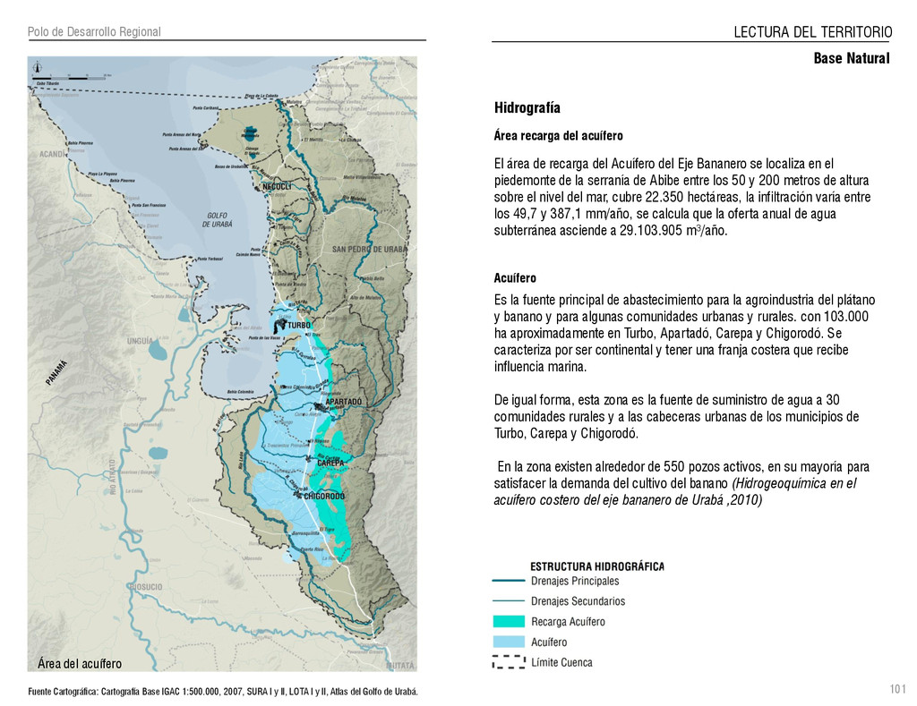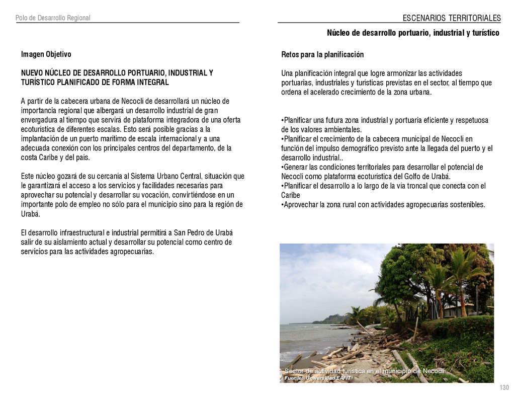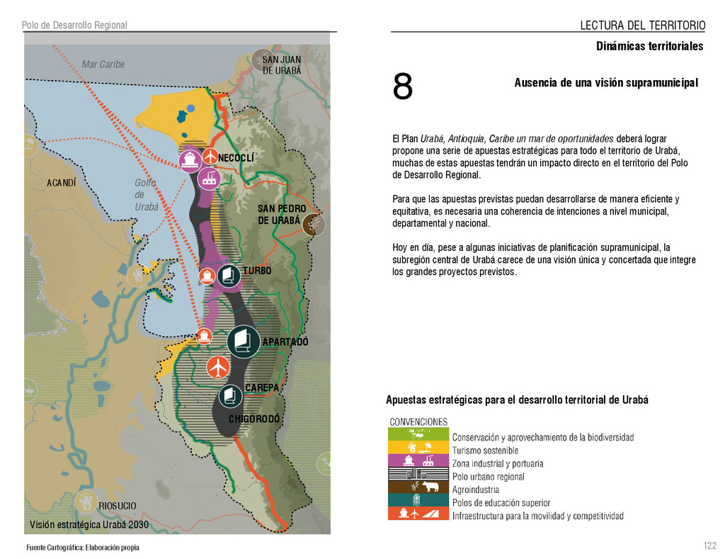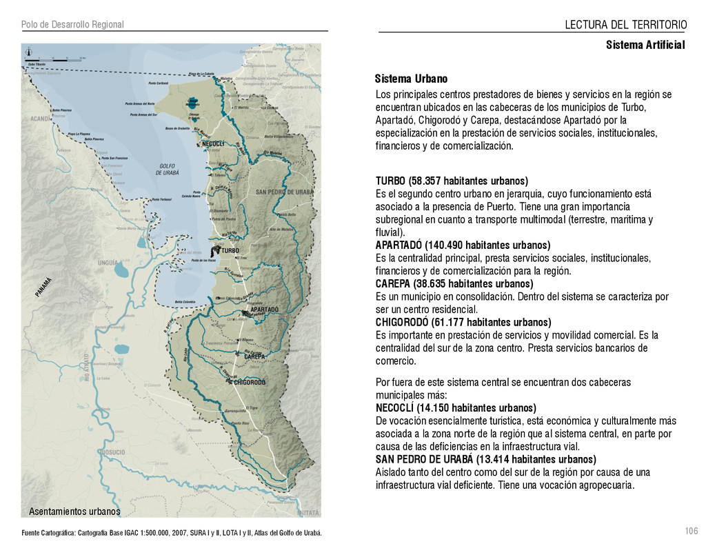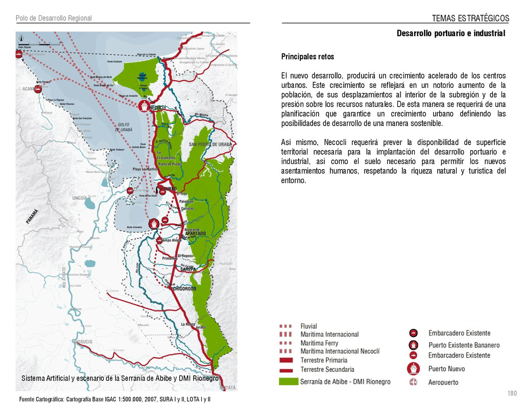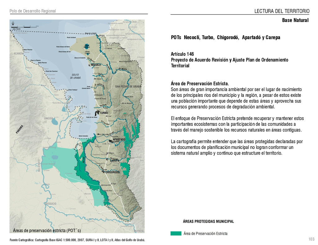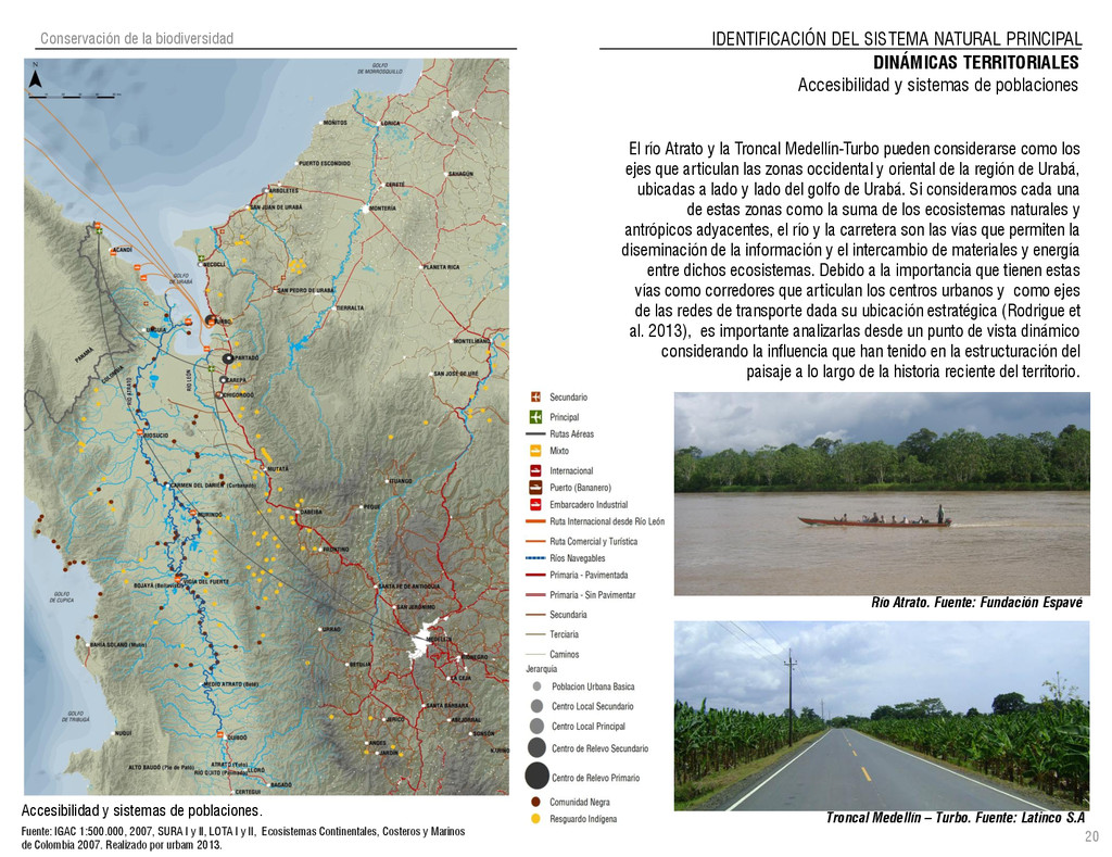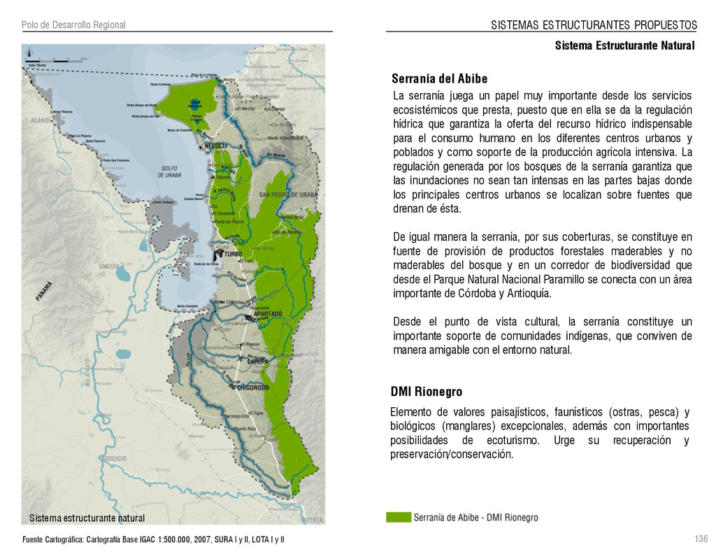 de Antioquia. 2007. Atlas del golfo de Urabá; una mirada al Caribe de Antioquia y Chocó. Instituto de Investigaciones Marinas y Costeras (INVEMAR), Unidad Administrativa especial del Sistema de Parques Nacionales Naturales (UAESPNN), The Nature Conservancy (TNC). 2007. Análisis de vacíos de conservación y propuesta del sistema representativo de áreas marinas protegidas para Colombia. INVEMAR, GOBERNACIÓN DE ANTIOQUIA, CORPOURABA, CODECHOCO. 2008. Formulación de los lineamientos y estrategias de manejo integrado de la Unidad Ambiental Costera del Darién. Editado por: A.P. Zamora, A. López y P.C. Sierra-Correa. Santa Marta. Serie de Documentos Generales INVEMAR No. 22 JIMENO, MYRIAM, SOTOMAYOR, LUCIA, VALDERRAMA, LUZ M. 1995. Chocó: Diversidad Cultural y Medio ambiente. Santafé de Bogotá: Fondo FEN Colombia. LOTA. 2011. Lineamiento de Ordenamiento Territorial de Antioquia, Comisión Tripartita. Unión de Universidades: Universidad de Antioquia, Universidad Nacional, Universidad Pontificia Bolivariana, Universidad de Medellín, Escuela de Ingeniería de Antioquia . Liu, J., Dietz, Thomas., Carpenter, S., Folke, C., Alberti, M., Redman, C.H., Schneider, S.H., Ostrom, E., Pell, A.N., Lubchenco, J., Taylor, W., Ouyang, Z., Deadman, P., Kratz, T., and W. Provencher. 2007. Coupled Human and Natural Systems. AMBIO: A Journal of the Human Environment36 (8), 639-649 Ministerio de Comercio, Industria y Turismo de Colombia. 2013. Programa de Transformación Produtiva. http://www.ptp.com.co/portal/default.aspx Página consultada por última vez el 21 de marzo de 2013. Ministerio del Medio Ambiente-MMA, Departamento Nacional de Planeación e Instituto de Investigaciones de los Recursos Biológicos “ Alexander von Humboldt” . 1995. Política Nacional de Biodiversidad. Bogotá D.C. 21 p. Municipio de San Juan de Urabá. http://sanjuandeuraba-antioquia.gov.co/nuestromunicipio.shtml?apc=mIxx-1-&m=f Página consultada por última vez el 21 de marzo de 2013. Murphy, P.G. y ; A. E. Lugo. 1986. Ecology of Tropical Dry Forest. Annual Review of Ecology and Systematics, 17: 67-88. Olson, D. Dinerstein, E. 1998. The Global 200: Priority ecoregions for global conservation. Annals of the Missouri Botanical Garden 89: 125-126 Organización de las Naciones Unidas (ONU). 2011. Protocolo de Nagoya sobre acceso a los recursos genéticos y participación justa y equitativa en los beneficios que se deriven de su utilización. Convenio sobre la diversidad biológica. O´Dea, A. Rodríguez, F. De García, C. Coates, A. 2007. Patrimonio paleontológico. La paleontología marina en el Istmo de Panamá. Instituto Smithsonian de Investigaciones tropicales. Canto Rodado 2:149-179 Planes de Ordenamiento Territorial, Municipios de Apartadó, Arboletes, Carepa, Chigorodó, Murindó, Mutatá, Necoclí, San Juan de Urabá, San Pedro de Urabá y Vigía del Fuerte.1999 – 2010. Programa de las naciones unidas para el medio ambiente (PNUMA). 2007. GEO-4 Boletín Informativo 2; Bienestar humano y el medio ambiente. http://www.pnuma.org/GEO4/documentos/01ambiente.pdf Prûssmann Uribe, J. 2011. Nuevos elementos para el manejo integrado de la Región de Urabá, Costa Caribe Colombiana, Tesis Universidad Eafit. Sánchez-Azofeifa, G.A., Quesada, M., Rodríguez, J.P., Nassar, J.M., Stoner, K.E., Castillo, A., Garvin, T., Zent, E., Calvo-Alvarado, J.C., . Kalacska, M., Margaret, E.R., Fajardo, L., Gamon, J.A., y P. Cuevas-Reyes. 2005. Research priorities for Neotropical dry forests. Biotropica 37 (4), 477–485 SURA, Sistema Urbano Regional de Antioquia, Universidad Nacional de Colombia, Sede Medellín, Gobernación de Antioquia, 2010. Restrepo, J. D., Kjerfve, B., 2000. Water and sediment discharges from the western slopes of the Colombian Andes with focus on Rio San Juan. Journal of Geology, 108 (1):17-33. Secretaría de Minas. 2012. Títulos mineros, solicitudes y Legalizaciones. UNAM-. 2011. Arrecifes. Universidad Nacional Autónoma de México www.puma.unam.mx/festival/index.php/arrecifes Universidad Eafit- Gobernación de Antioquia. 2011.Estructura de la propiedad de la tierra en Antioquia. Universidad Nacional. 2006. Impactos ambientales y territoriales de las dinámicas poblacionales en el Urabá antioqueño. Participación de estudiantes de la maestría estudios urbano-regionales bajo la coordinación del profesor Luís Carlos Agudelo, adscrito a la Facultad de Arquitectura de la UN Medellín. Urrego, L. et al. 2010. Distribución, composición y estructura de los manglares en el golfo de Urabá en Proyecto Expedición Estuarina Golfo de Urabá, fase 1. WWF. 2008. Plan de Acción del Complejo Ecorregional Chocó-Darién. 190