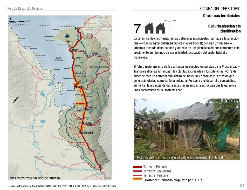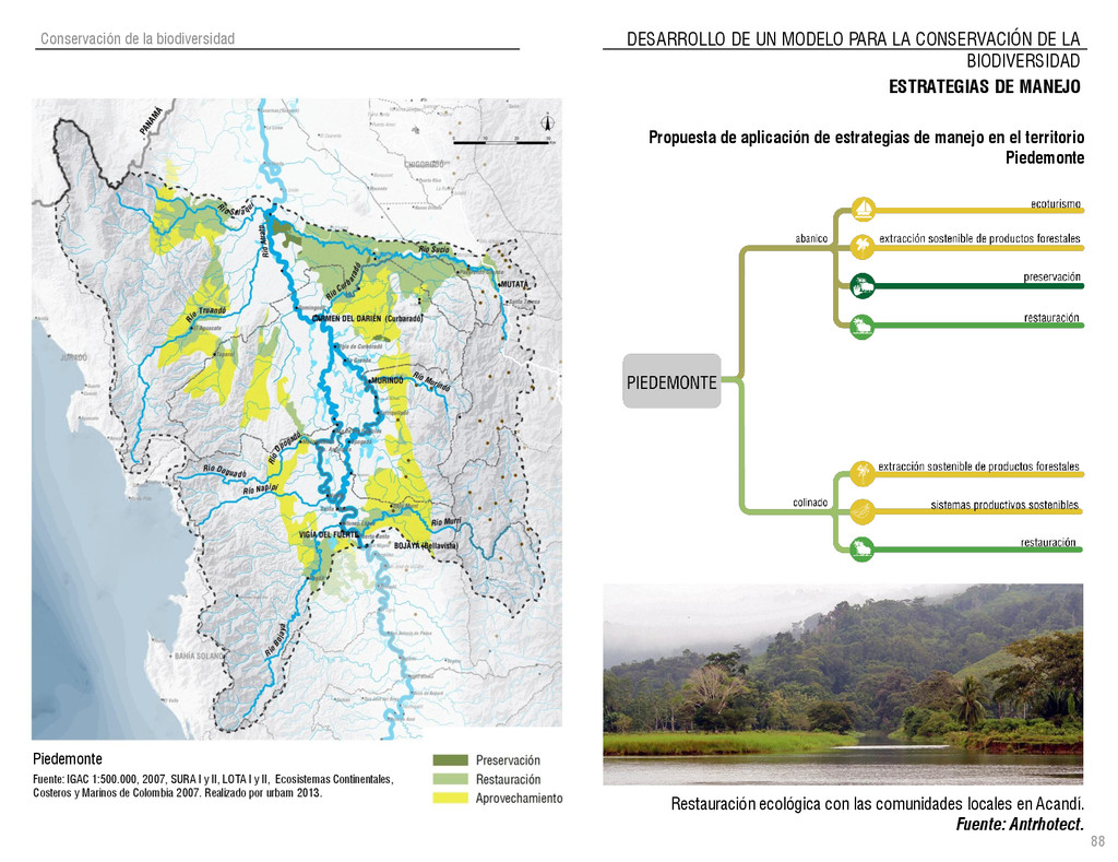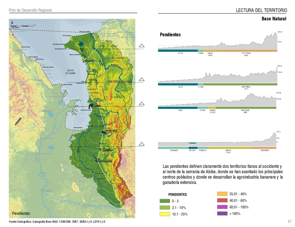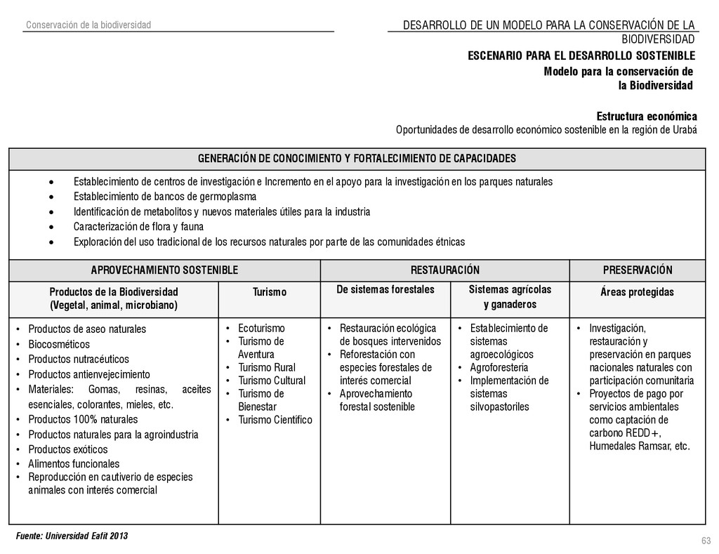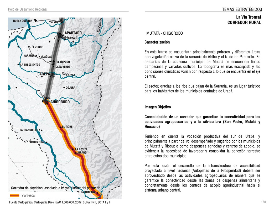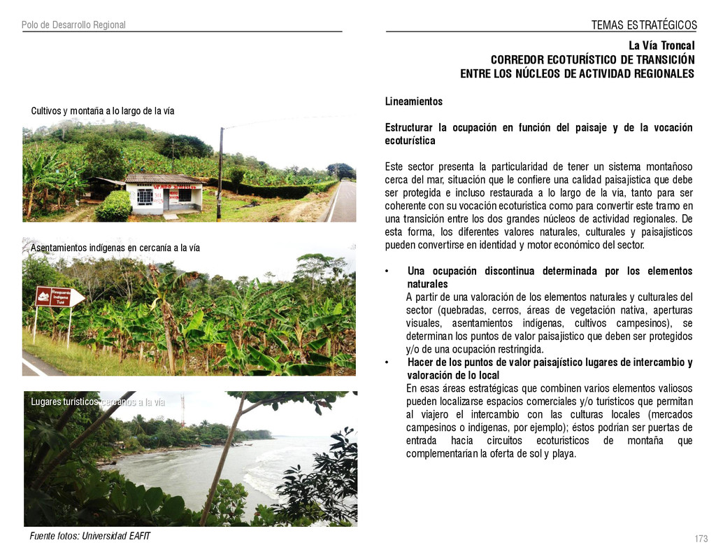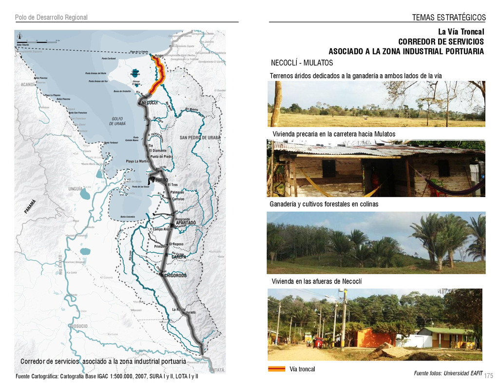 de Antioquia. 2007. Atlas del golfo de Urabá; una mirada al Caribe de Antioquia y Chocó. Instituto de Investigaciones Marinas y Costeras (INVEMAR), Unidad Administrativa especial del Sistema de Parques Nacionales Naturales (UAESPNN), The Nature Conservancy (TNC). 2007. Análisis de vacíos de conservación y propuesta del sistema representativo de áreas marinas protegidas para Colombia. INVEMAR, GOBERNACIÓN DE ANTIOQUIA, CORPOURABA, CODECHOCO. 2008. Formulación de los lineamientos y estrategias de manejo integrado de la Unidad Ambiental Costera del Darién. Editado por: A.P. Zamora, A. López y P.C. Sierra-Correa. Santa Marta. Serie de Documentos Generales INVEMAR No. 22 JIMENO, MYRIAM, SOTOMAYOR, LUCIA, VALDERRAMA, LUZ M. 1995. Chocó: Diversidad Cultural y Medio ambiente. Santafé de Bogotá: Fondo FEN Colombia. LOTA. 2011. Lineamiento de Ordenamiento Territorial de Antioquia, Comisión Tripartita. Unión de Universidades: Universidad de Antioquia, Universidad Nacional, Universidad Pontificia Bolivariana, Universidad de Medellín, Escuela de Ingeniería de Antioquia . Liu, J., Dietz, Thomas., Carpenter, S., Folke, C., Alberti, M., Redman, C.H., Schneider, S.H., Ostrom, E., Pell, A.N., Lubchenco, J., Taylor, W., Ouyang, Z., Deadman, P., Kratz, T., and W. Provencher. 2007. Coupled Human and Natural Systems. AMBIO: A Journal of the Human Environment36 (8), 639-649 Ministerio de Comercio, Industria y Turismo de Colombia. 2013. Programa de Transformación Produtiva. http://www.ptp.com.co/portal/default.aspx Página consultada por última vez el 21 de marzo de 2013. Ministerio del Medio Ambiente-MMA, Departamento Nacional de Planeación e Instituto de Investigaciones de los Recursos Biológicos “ Alexander von Humboldt” . 1995. Política Nacional de Biodiversidad. Bogotá D.C. 21 p. Municipio de San Juan de Urabá. http://sanjuandeuraba-antioquia.gov.co/nuestromunicipio.shtml?apc=mIxx-1-&m=f Página consultada por última vez el 21 de marzo de 2013. Murphy, P.G. y ; A. E. Lugo. 1986. Ecology of Tropical Dry Forest. Annual Review of Ecology and Systematics, 17: 67-88. Olson, D. Dinerstein, E. 1998. The Global 200: Priority ecoregions for global conservation. Annals of the Missouri Botanical Garden 89: 125-126 Organización de las Naciones Unidas (ONU). 2011. Protocolo de Nagoya sobre acceso a los recursos genéticos y participación justa y equitativa en los beneficios que se deriven de su utilización. Convenio sobre la diversidad biológica. O´Dea, A. Rodríguez, F. De García, C. Coates, A. 2007. Patrimonio paleontológico. La paleontología marina en el Istmo de Panamá. Instituto Smithsonian de Investigaciones tropicales. Canto Rodado 2:149-179 Planes de Ordenamiento Territorial, Municipios de Apartadó, Arboletes, Carepa, Chigorodó, Murindó, Mutatá, Necoclí, San Juan de Urabá, San Pedro de Urabá y Vigía del Fuerte.1999 – 2010. Programa de las naciones unidas para el medio ambiente (PNUMA). 2007. GEO-4 Boletín Informativo 2; Bienestar humano y el medio ambiente. http://www.pnuma.org/GEO4/documentos/01ambiente.pdf Prûssmann Uribe, J. 2011. Nuevos elementos para el manejo integrado de la Región de Urabá, Costa Caribe Colombiana, Tesis Universidad Eafit. Sánchez-Azofeifa, G.A., Quesada, M., Rodríguez, J.P., Nassar, J.M., Stoner, K.E., Castillo, A., Garvin, T., Zent, E., Calvo-Alvarado, J.C., . Kalacska, M., Margaret, E.R., Fajardo, L., Gamon, J.A., y P. Cuevas-Reyes. 2005. Research priorities for Neotropical dry forests. Biotropica 37 (4), 477–485 SURA, Sistema Urbano Regional de Antioquia, Universidad Nacional de Colombia, Sede Medellín, Gobernación de Antioquia, 2010. Restrepo, J. D., Kjerfve, B., 2000. Water and sediment discharges from the western slopes of the Colombian Andes with focus on Rio San Juan. Journal of Geology, 108 (1):17-33. Secretaría de Minas. 2012. Títulos mineros, solicitudes y Legalizaciones. UNAM-. 2011. Arrecifes. Universidad Nacional Autónoma de México www.puma.unam.mx/festival/index.php/arrecifes Universidad Eafit- Gobernación de Antioquia. 2011.Estructura de la propiedad de la tierra en Antioquia. Universidad Nacional. 2006. Impactos ambientales y territoriales de las dinámicas poblacionales en el Urabá antioqueño. Participación de estudiantes de la maestría estudios urbano-regionales bajo la coordinación del profesor Luís Carlos Agudelo, adscrito a la Facultad de Arquitectura de la UN Medellín. Urrego, L. et al. 2010. Distribución, composición y estructura de los manglares en el golfo de Urabá en Proyecto Expedición Estuarina Golfo de Urabá, fase 1. WWF. 2008. Plan de Acción del Complejo Ecorregional Chocó-Darién. 190