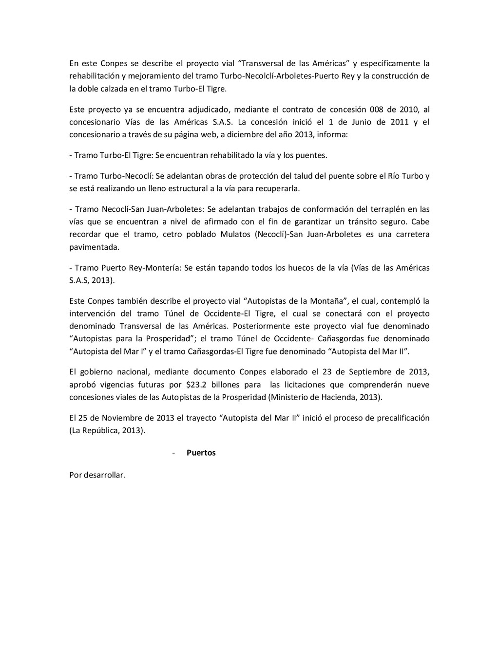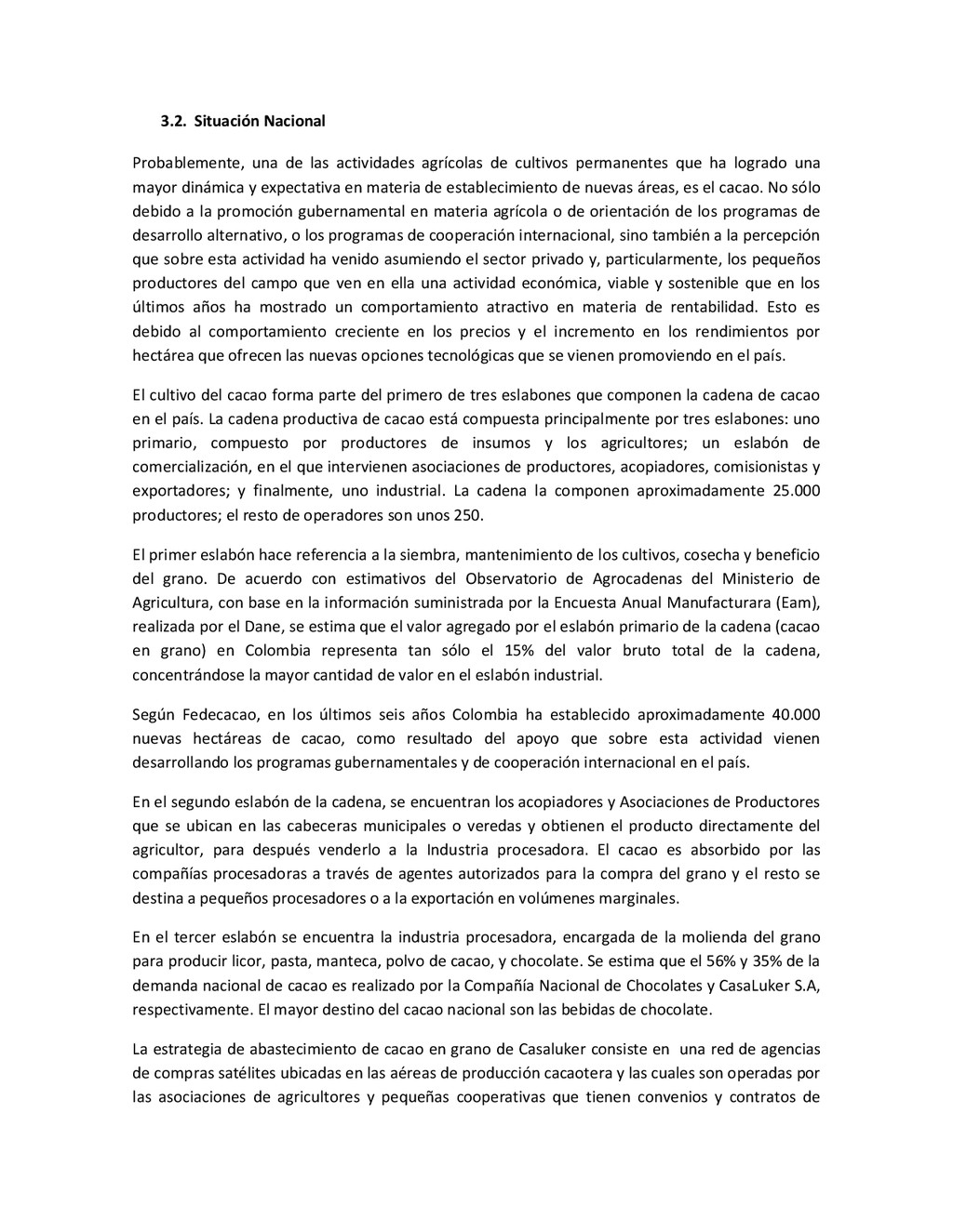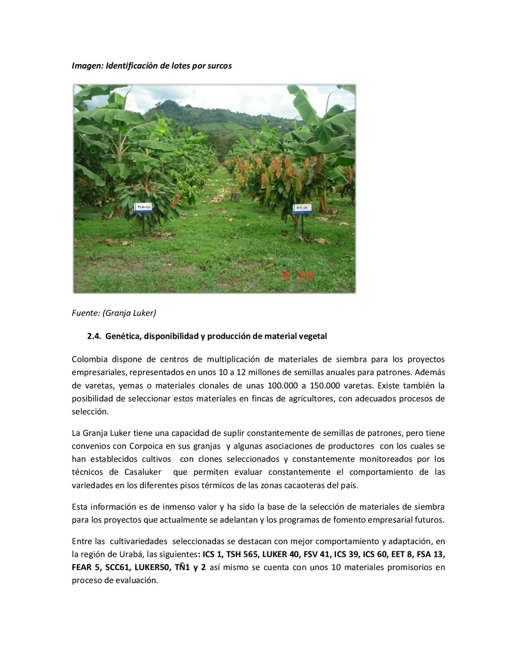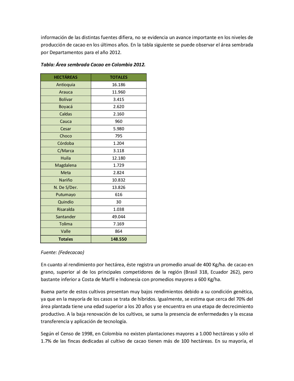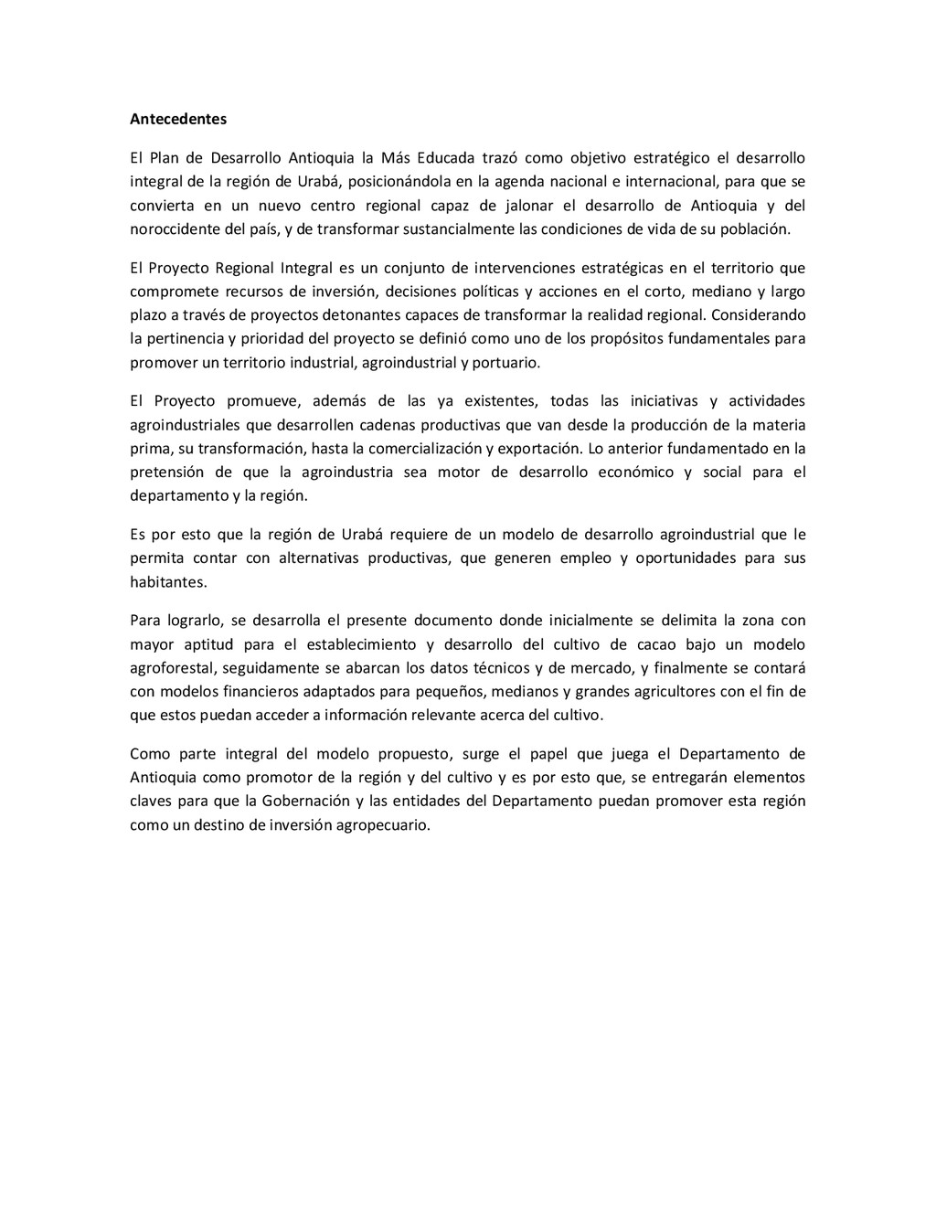 la cabecera municipal de San Juan de Urabá, a una altitud de 4 m.s.n.m. Su clasificación climática es Cálido húmedo. Balance hídrico del suelo en la estación SAN JUAN DE URABÁ Balance Hídrico del Suelo Mes TOTAL E F M A M J J A S O N D Temperatura (°C) 28,1 28,4 28,7 28,5 28,1 28 28,1 28 27,8 27,7 27,6 27,8 28,1 Evapotranspiración (mm) 167,6 159,4 185,9 180,7 176,9 170,9 175,4 171,8 161,2 157,1 150,2 156,6 2.013,8 Precipitación (mm) 35,3 36 44,4 140,5 275,9 227,4 218,1 263,6 232,8 238,4 232 123,2 2.067,6 Déficit (mm) 65,7 123 141,5 40,2 0 0 0 0 0 0 0 0 370,7 Reserva (mm) 67 0 0 0 0 99 100 100 100 100 100 100 67 Excedentes (mm) 0 0 0 0 0 55,4 42,7 91,8 71,6 81,3 81,8 0 424,6 Fuente: (IGAC, 2007). Estación ARBOLETES: Esta estación está ubicada en la cabecera municipal de Arboletes, a una altitud de 4 m.s.n.m. Su clasificación climática es Cálido Seco. Balance hídrico del suelo en la estación ARBOLETES Balance Hídrico del Suelo Mes TOTAL E F M A M J J A S O N D Temperatura (°C) 27,5 27,6 27,9 28 27,8 27,6 27,5 27,5 27,2 27,3 27,3 27,4 27,6 Evapotranspiración (mm) 153 141,4 165,5 168 169,4 161,4 162,1 160,5 147,7 149,9 144,1 149,2 1872,3 Precipitación (mm) 14,3 15,9 44,4 126,9 258,9 186,2 195,3 211,1 209 217,3 183,9 61,2 1.724,4 Déficit (mm) 126,7 125,5 121,1 41,1 0 0 0 0 0 0 0 0 414,4 Reserva (mm) 12 0 0 0 0 89,5 100 100 100 100 100 100 12 Excedentes (mm) 0 0 0 0 0 14,2 33,2 50,6 61,3 67,4 39,8 0 266,6 Fuente: (IGAC, 2007) Otras estaciones: A continuación se describen las variables climáticas generales para otras estaciones climatológicas de la región del Urabá antioqueño. N° Estación (IDEAM) Ubicación Latitud (Norte) Longitud (Oeste) Precipitación (mm) Temp. Media °C T. media máxima °C T. media mímima °C 1202503 El Mellito - Necoclí 8°32'45'' 76°40'16'' 1.827 26,7 30,8 23,5 1202501 Cabecera- Turbo 8°7'0'' 76°44'04'' 2.427 27,2 30,8 23,3 Fuente: (IDEAM, 2005)