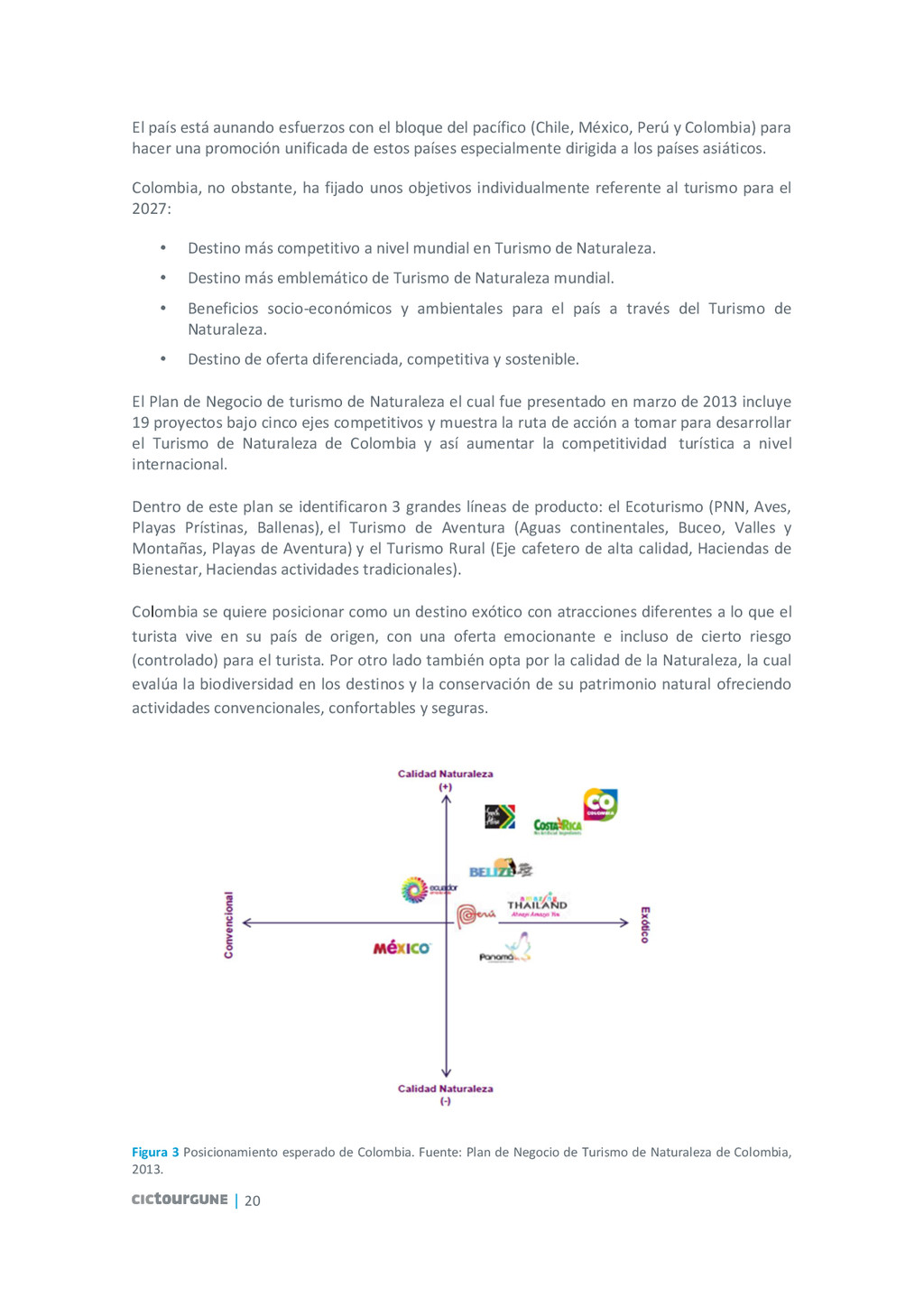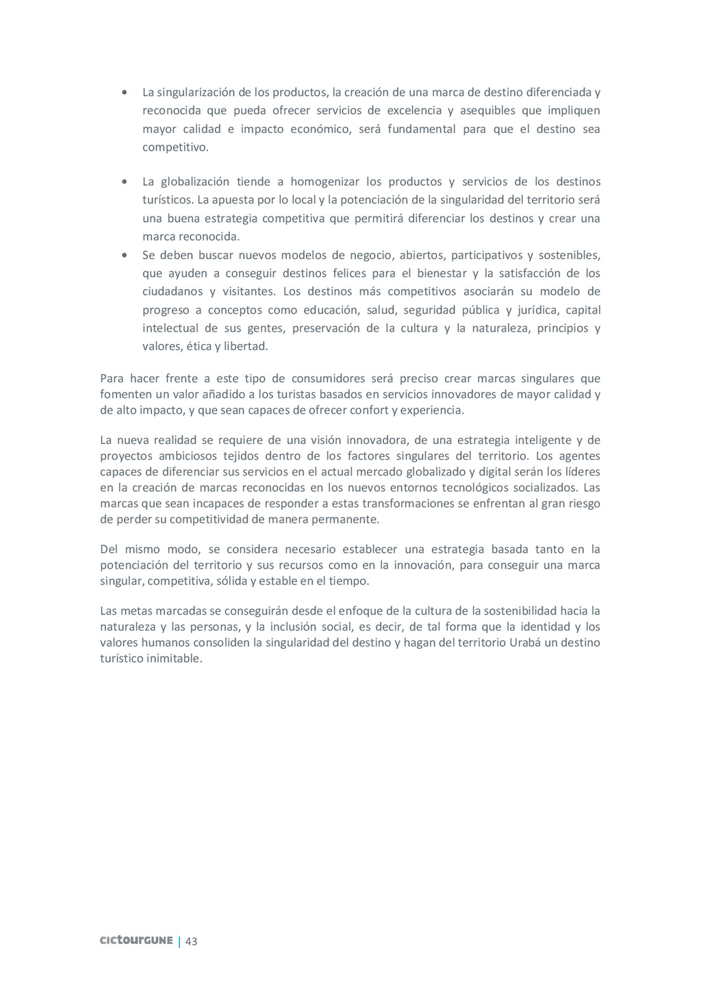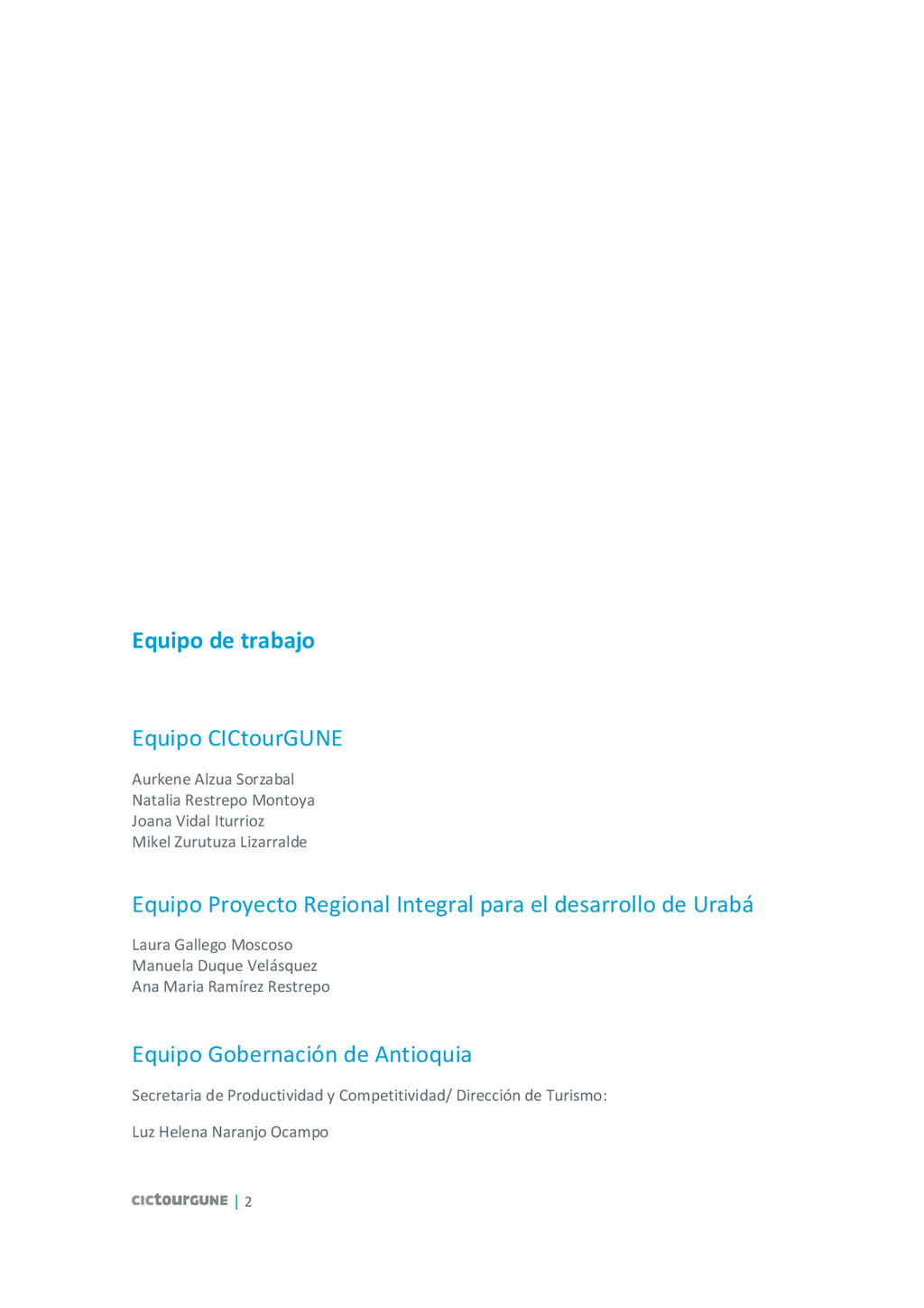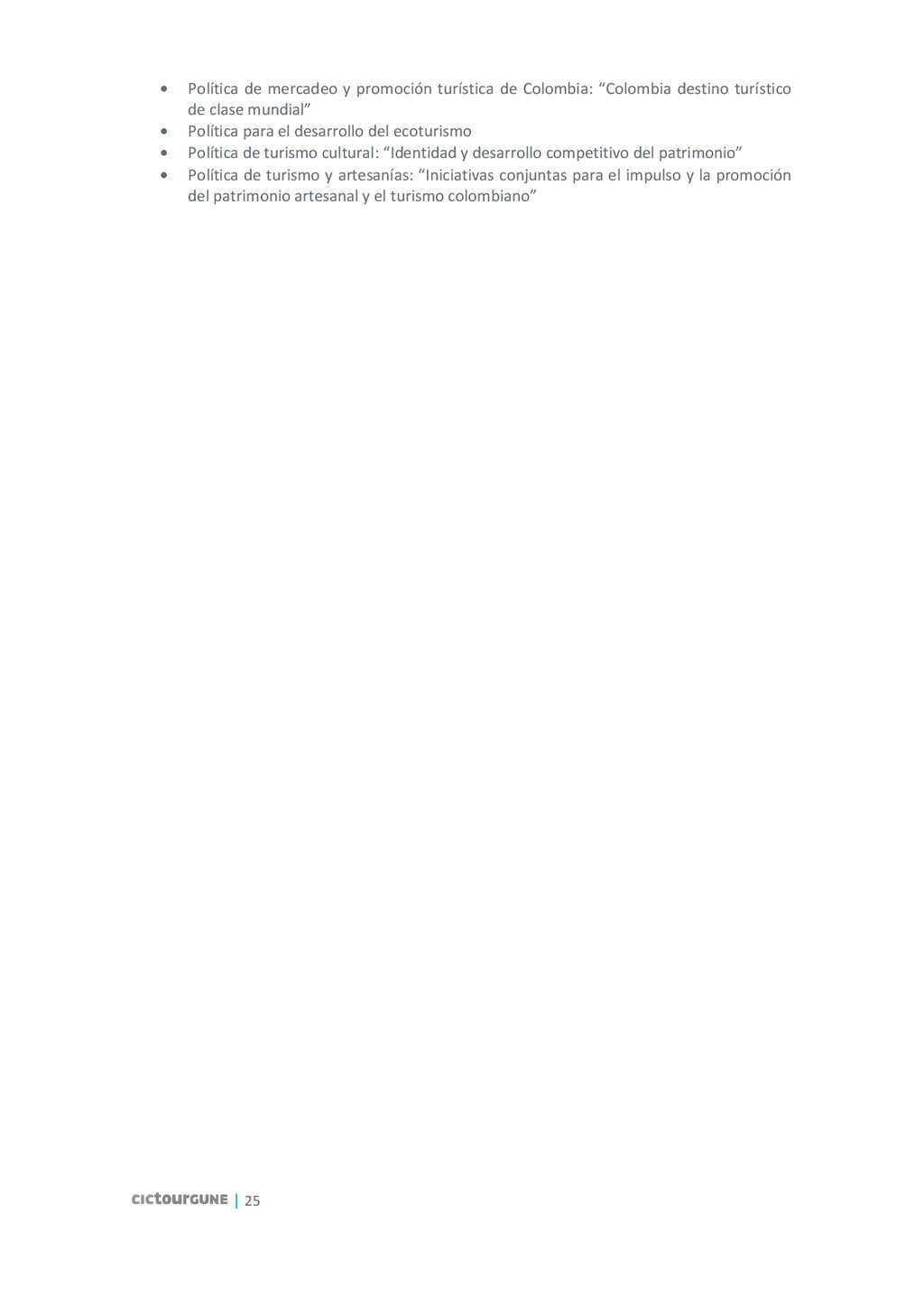 se arroja a continuación permite un acercamiento al desarrollo económico del departamento de Antioquia y su posición con relación al país. De los 46.294.800 millones4 de habitantes que residen en Colombia, 6.065.8465 viven en Antioquia, lo que representa un 13% de la población colombiana. El producto interior bruto (PIB) en Colombia fue de $369.6 millones6, mientras que la cifra alcanzada en Antioquia fue de $42,4 mil millones7, es decir, el departamento contribuye en un 14,7% al PIB nacional. Antioquia se presenta como el segundo departamento después de Bogotá que mayor participación tiene en el PIB nacional. Al igual que en la distribución del PIB nacional, los establecimientos financieros, seguros actividades inmobiliarias y los servicios a las empresas es la actividad que más aporta al PIB del departamento antioqueño. En el caso de la actividad económica comercial y de hostelería, sin embargo, se observa un recorrido más sostenible durante los últimos años, en comparación a la tendencia nacional analizada anteriormente. Para el 2012 se prevé una mejoría con respecto al año anterior. Gráfico 4 Evolución del % de PIB por rama de actividad en Antioquia. Fuente: DANE http://www.dane.gov.co/index.php/cuentas-economicas/cuentas-departamentales Última actualización: 12/03/2014. A continuación se muestra el Escalafón de la Competitividad de los Departamentos de Colombia, el cual constituye un indicador de desarrollo económico, social e institucional. En él se expresan los diversos activos estructurales con patrones de especialización particulares que tiene cada departamento. 4 Dato obtenido del Banco Mundial. Última actualización: 9/11/2011 5 Dato obtenido del Plan de Desarrollo Turístico de Antioquia - 2012. Última actualización: 2010 6 Dato obtenido del Banco Mundial. Última actualización: 9/11/2011 7 Dato obtenido del Plan de Desarrollo Turístico de Antioquia - 2012. Última actualización: 2010 22,20 22,34 21,60 21,31 20,35 20,28 20,31 20,08 20,80 21,09 21,57 21,21 21,74 13,34 13,20 13,36 13,31 12,79 12,40 12,81 13,12 13,15 13,06 13,5 13,2 13,6 1,49 1,41 1,57 2,32 2,25 2,61 2,99 2,13 2,73 2,66 2,4 3,1 3,5 0,00 5,00 10,00 15,00 20,00 25,00 2000 2001 2002 2003 2004 2005 2006 2007 2008 2009 2010 2011p 2012pr % del PIB impuestos no incluidos Participación porcentual por rama de actividad del PIB de Antioquia ESTABLECIMIENTOS FINANCIEROS, SEGUROS, ACTIVIDADES INMOBILIARIAS Y SERVICIOS A LAS EMPRESAS INDUSTRIA MANUFACTURERA ACTIVIDADES DE SERVICIOS SOCIALES, COMUNALES Y PERSONALES COMERCIO, REPARACIÓN, RESTAURANTES Y HOTELES CONSTRUCCION AGRICULTURA, GANADERIA, CAZA, SILVICULTURA Y PESCA TRANSPORTE, ALMACENAMIENTO Y COMUNICACIONES ELECTRICIDAD,GAS Y AGUA EXPLOTACION DE MINAS Y CANTERAS