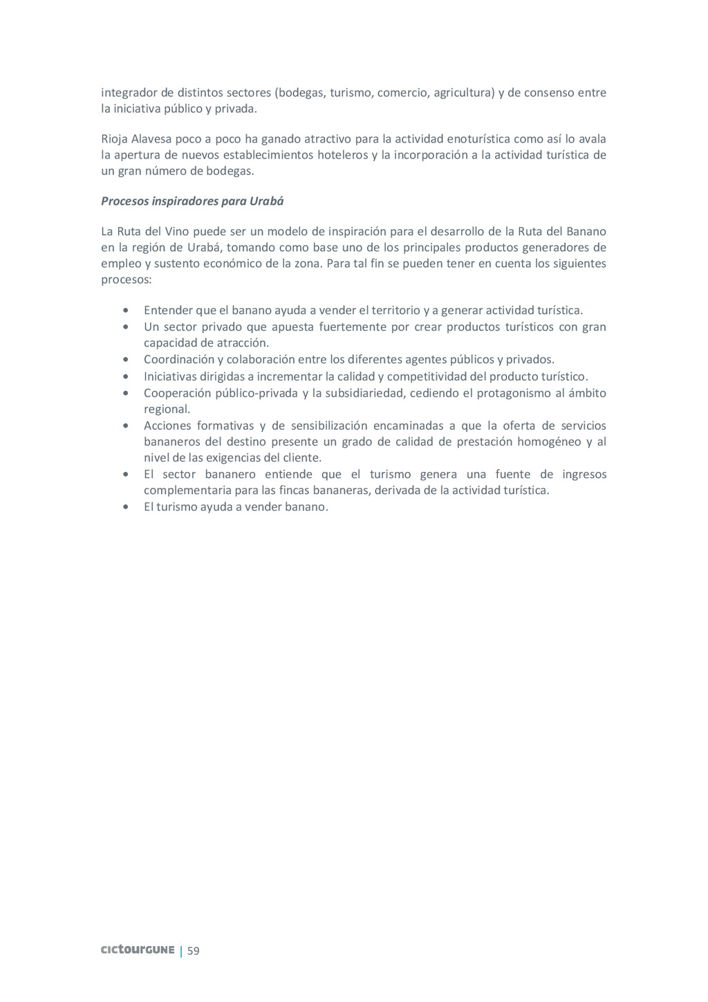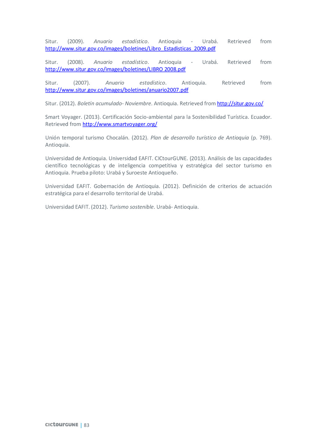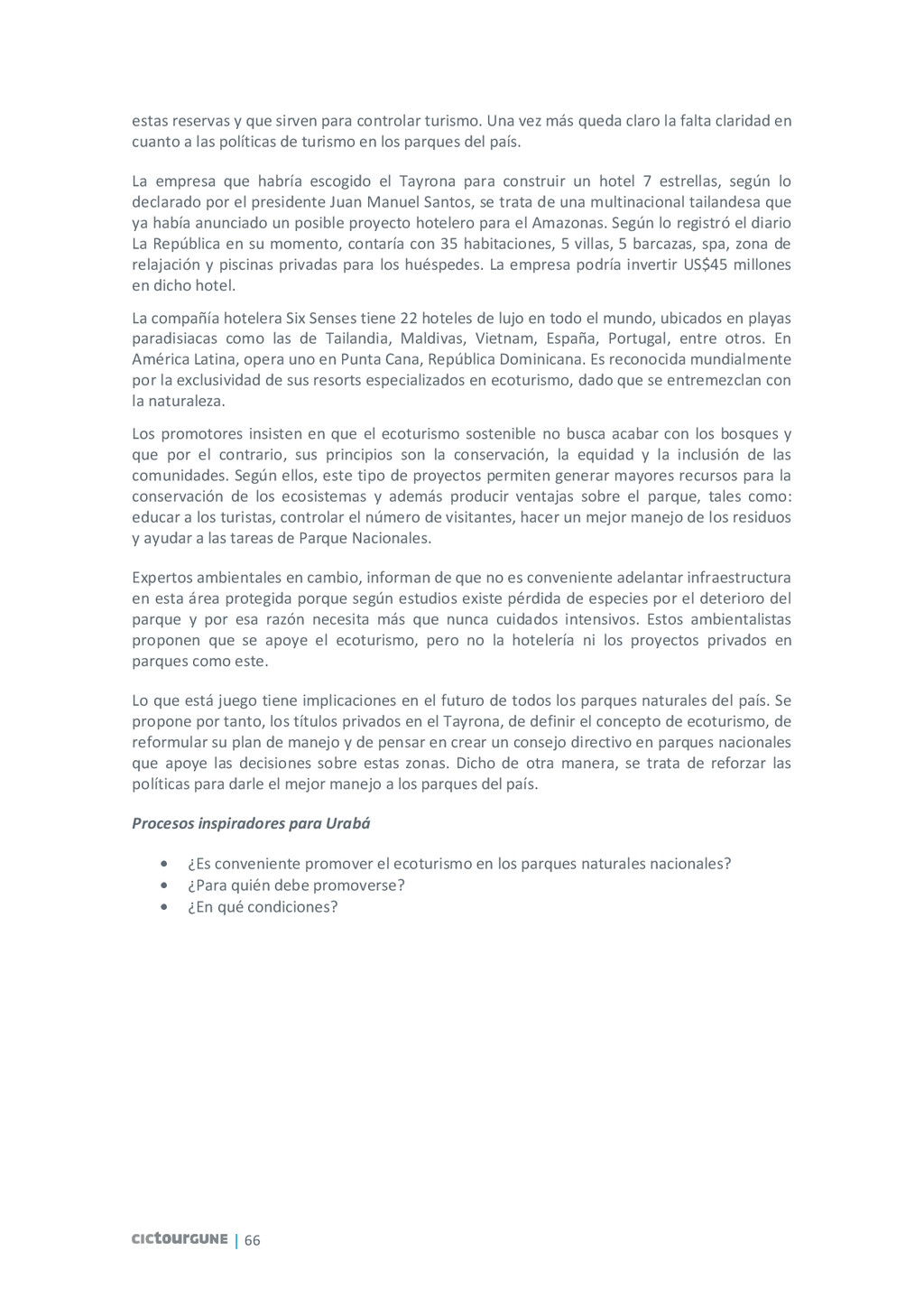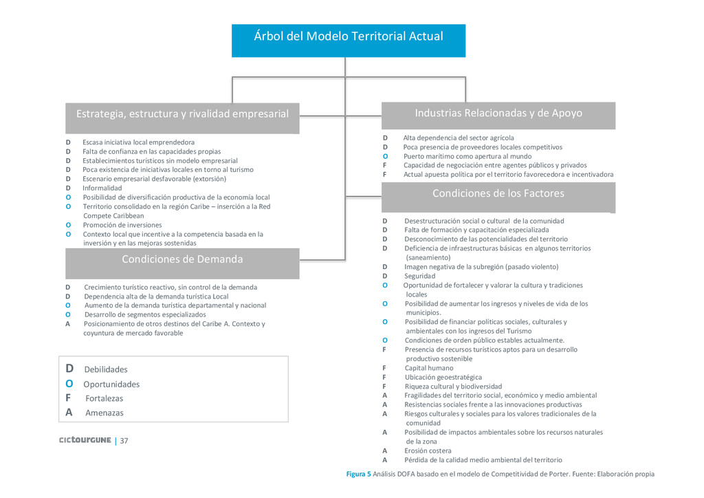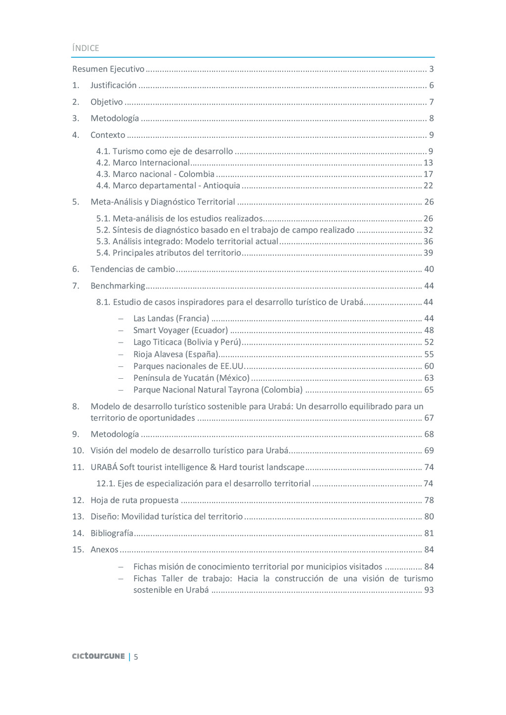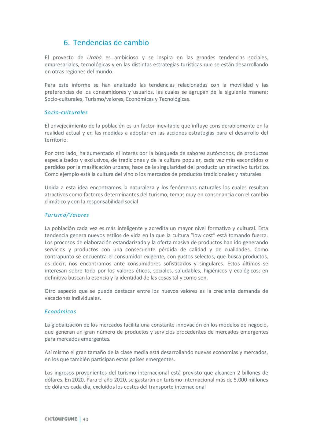 se arroja a continuación permite un acercamiento al desarrollo económico del departamento de Antioquia y su posición con relación al país. De los 46.294.800 millones4 de habitantes que residen en Colombia, 6.065.8465 viven en Antioquia, lo que representa un 13% de la población colombiana. El producto interior bruto (PIB) en Colombia fue de $369.6 millones6, mientras que la cifra alcanzada en Antioquia fue de $42,4 mil millones7, es decir, el departamento contribuye en un 14,7% al PIB nacional. Antioquia se presenta como el segundo departamento después de Bogotá que mayor participación tiene en el PIB nacional. Al igual que en la distribución del PIB nacional, los establecimientos financieros, seguros actividades inmobiliarias y los servicios a las empresas es la actividad que más aporta al PIB del departamento antioqueño. En el caso de la actividad económica comercial y de hostelería, sin embargo, se observa un recorrido más sostenible durante los últimos años, en comparación a la tendencia nacional analizada anteriormente. Para el 2012 se prevé una mejoría con respecto al año anterior. Gráfico 4 Evolución del % de PIB por rama de actividad en Antioquia. Fuente: DANE http://www.dane.gov.co/index.php/cuentas-economicas/cuentas-departamentales Última actualización: 12/03/2014. A continuación se muestra el Escalafón de la Competitividad de los Departamentos de Colombia, el cual constituye un indicador de desarrollo económico, social e institucional. En él se expresan los diversos activos estructurales con patrones de especialización particulares que tiene cada departamento. 4 Dato obtenido del Banco Mundial. Última actualización: 9/11/2011 5 Dato obtenido del Plan de Desarrollo Turístico de Antioquia - 2012. Última actualización: 2010 6 Dato obtenido del Banco Mundial. Última actualización: 9/11/2011 7 Dato obtenido del Plan de Desarrollo Turístico de Antioquia - 2012. Última actualización: 2010 22,20 22,34 21,60 21,31 20,35 20,28 20,31 20,08 20,80 21,09 21,57 21,21 21,74 13,34 13,20 13,36 13,31 12,79 12,40 12,81 13,12 13,15 13,06 13,5 13,2 13,6 1,49 1,41 1,57 2,32 2,25 2,61 2,99 2,13 2,73 2,66 2,4 3,1 3,5 0,00 5,00 10,00 15,00 20,00 25,00 2000 2001 2002 2003 2004 2005 2006 2007 2008 2009 2010 2011p 2012pr % del PIB impuestos no incluidos Participación porcentual por rama de actividad del PIB de Antioquia ESTABLECIMIENTOS FINANCIEROS, SEGUROS, ACTIVIDADES INMOBILIARIAS Y SERVICIOS A LAS EMPRESAS INDUSTRIA MANUFACTURERA ACTIVIDADES DE SERVICIOS SOCIALES, COMUNALES Y PERSONALES COMERCIO, REPARACIÓN, RESTAURANTES Y HOTELES CONSTRUCCION AGRICULTURA, GANADERIA, CAZA, SILVICULTURA Y PESCA TRANSPORTE, ALMACENAMIENTO Y COMUNICACIONES ELECTRICIDAD,GAS Y AGUA EXPLOTACION DE MINAS Y CANTERAS