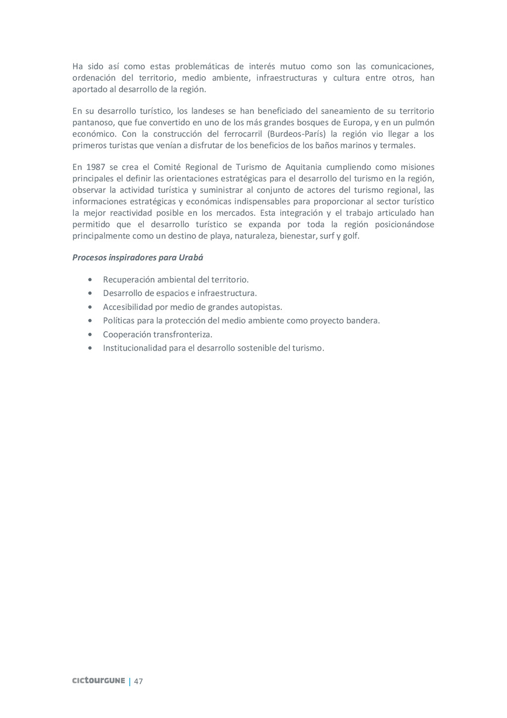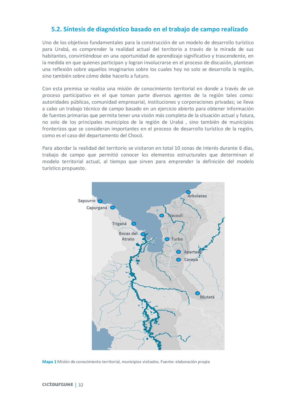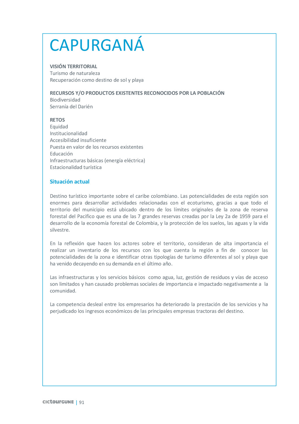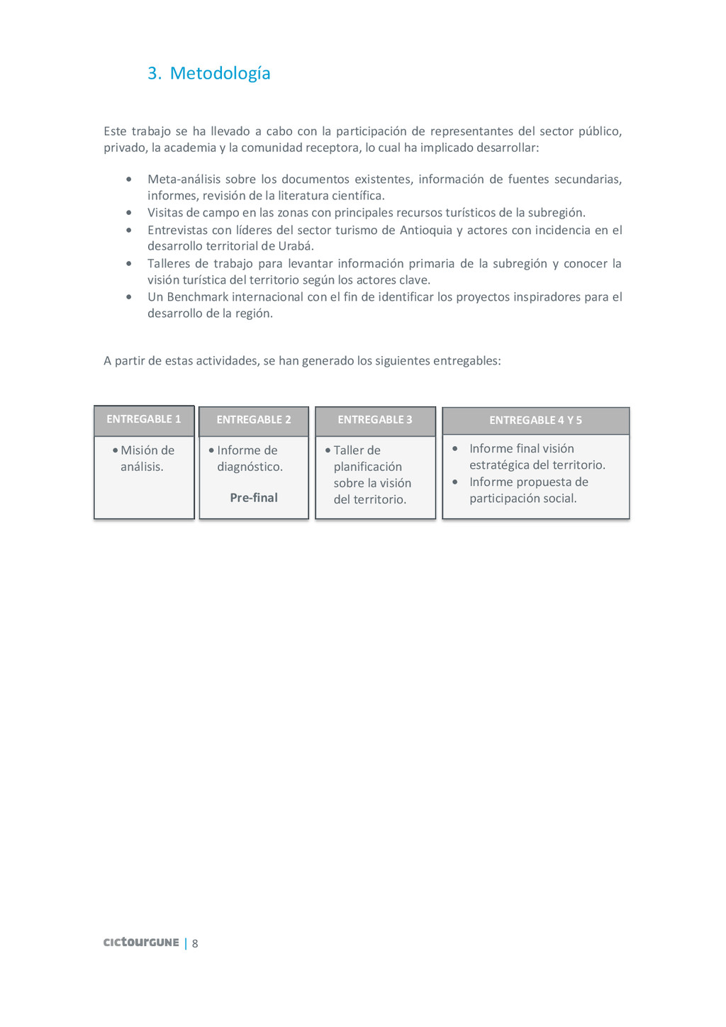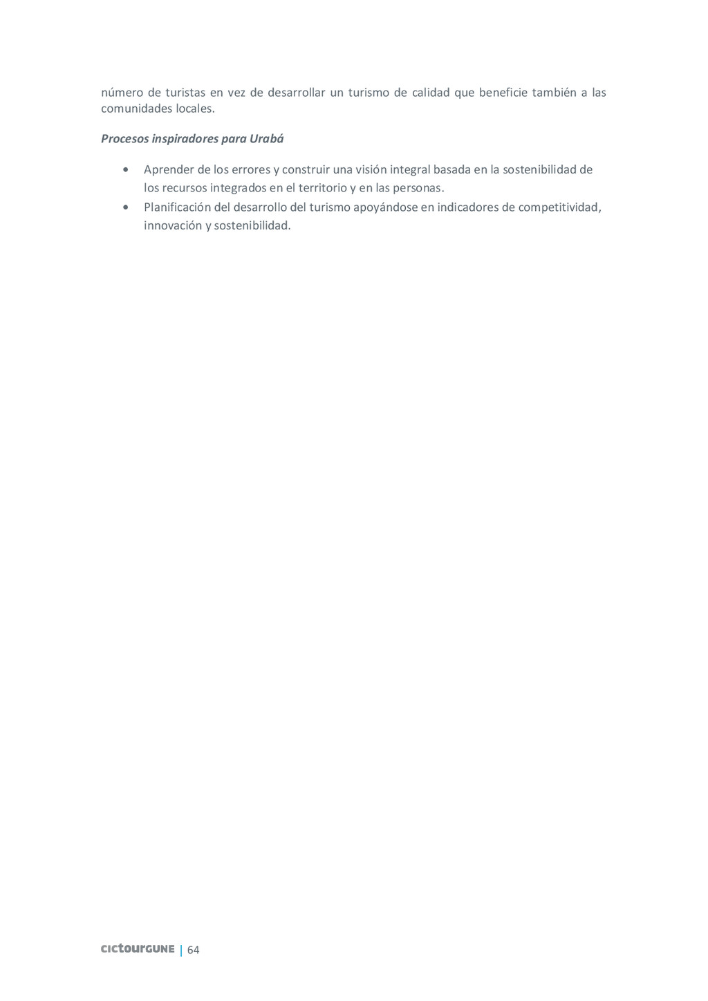 se arroja a continuación permite un acercamiento al desarrollo económico del departamento de Antioquia y su posición con relación al país. De los 46.294.800 millones4 de habitantes que residen en Colombia, 6.065.8465 viven en Antioquia, lo que representa un 13% de la población colombiana. El producto interior bruto (PIB) en Colombia fue de $369.6 millones6, mientras que la cifra alcanzada en Antioquia fue de $42,4 mil millones7, es decir, el departamento contribuye en un 14,7% al PIB nacional. Antioquia se presenta como el segundo departamento después de Bogotá que mayor participación tiene en el PIB nacional. Al igual que en la distribución del PIB nacional, los establecimientos financieros, seguros actividades inmobiliarias y los servicios a las empresas es la actividad que más aporta al PIB del departamento antioqueño. En el caso de la actividad económica comercial y de hostelería, sin embargo, se observa un recorrido más sostenible durante los últimos años, en comparación a la tendencia nacional analizada anteriormente. Para el 2012 se prevé una mejoría con respecto al año anterior. Gráfico 4 Evolución del % de PIB por rama de actividad en Antioquia. Fuente: DANE http://www.dane.gov.co/index.php/cuentas-economicas/cuentas-departamentales Última actualización: 12/03/2014. A continuación se muestra el Escalafón de la Competitividad de los Departamentos de Colombia, el cual constituye un indicador de desarrollo económico, social e institucional. En él se expresan los diversos activos estructurales con patrones de especialización particulares que tiene cada departamento. 4 Dato obtenido del Banco Mundial. Última actualización: 9/11/2011 5 Dato obtenido del Plan de Desarrollo Turístico de Antioquia - 2012. Última actualización: 2010 6 Dato obtenido del Banco Mundial. Última actualización: 9/11/2011 7 Dato obtenido del Plan de Desarrollo Turístico de Antioquia - 2012. Última actualización: 2010 22,20 22,34 21,60 21,31 20,35 20,28 20,31 20,08 20,80 21,09 21,57 21,21 21,74 13,34 13,20 13,36 13,31 12,79 12,40 12,81 13,12 13,15 13,06 13,5 13,2 13,6 1,49 1,41 1,57 2,32 2,25 2,61 2,99 2,13 2,73 2,66 2,4 3,1 3,5 0,00 5,00 10,00 15,00 20,00 25,00 2000 2001 2002 2003 2004 2005 2006 2007 2008 2009 2010 2011p 2012pr % del PIB impuestos no incluidos Participación porcentual por rama de actividad del PIB de Antioquia ESTABLECIMIENTOS FINANCIEROS, SEGUROS, ACTIVIDADES INMOBILIARIAS Y SERVICIOS A LAS EMPRESAS INDUSTRIA MANUFACTURERA ACTIVIDADES DE SERVICIOS SOCIALES, COMUNALES Y PERSONALES COMERCIO, REPARACIÓN, RESTAURANTES Y HOTELES CONSTRUCCION AGRICULTURA, GANADERIA, CAZA, SILVICULTURA Y PESCA TRANSPORTE, ALMACENAMIENTO Y COMUNICACIONES ELECTRICIDAD,GAS Y AGUA EXPLOTACION DE MINAS Y CANTERAS