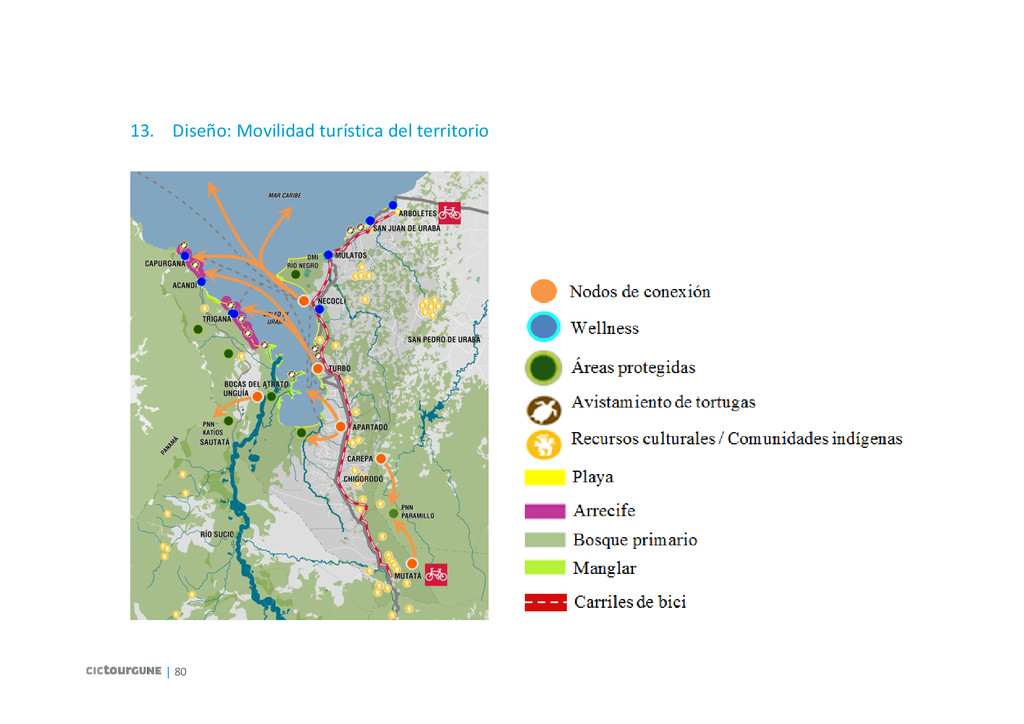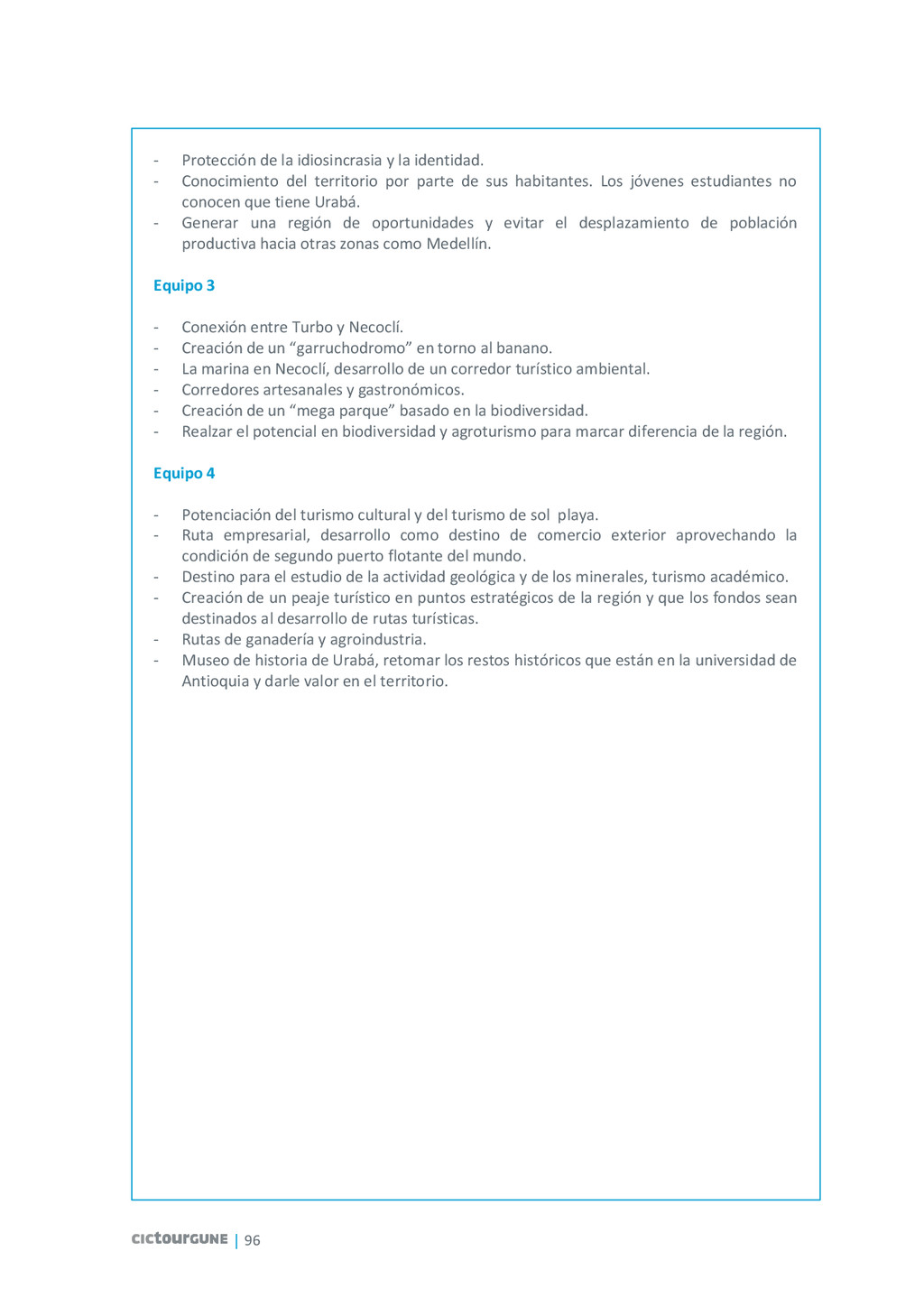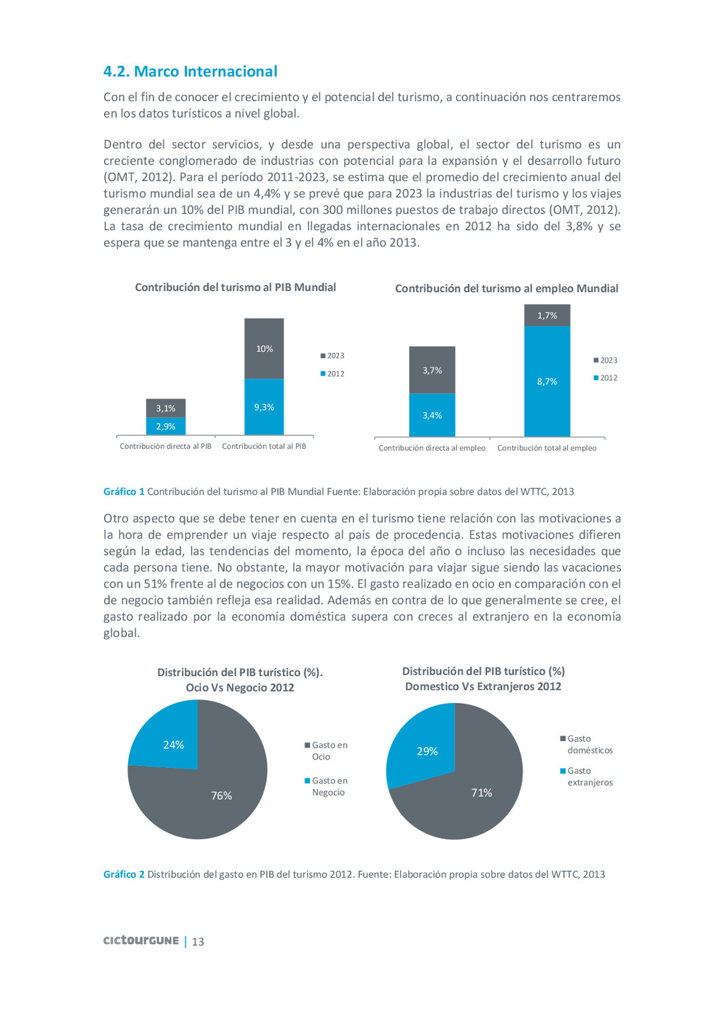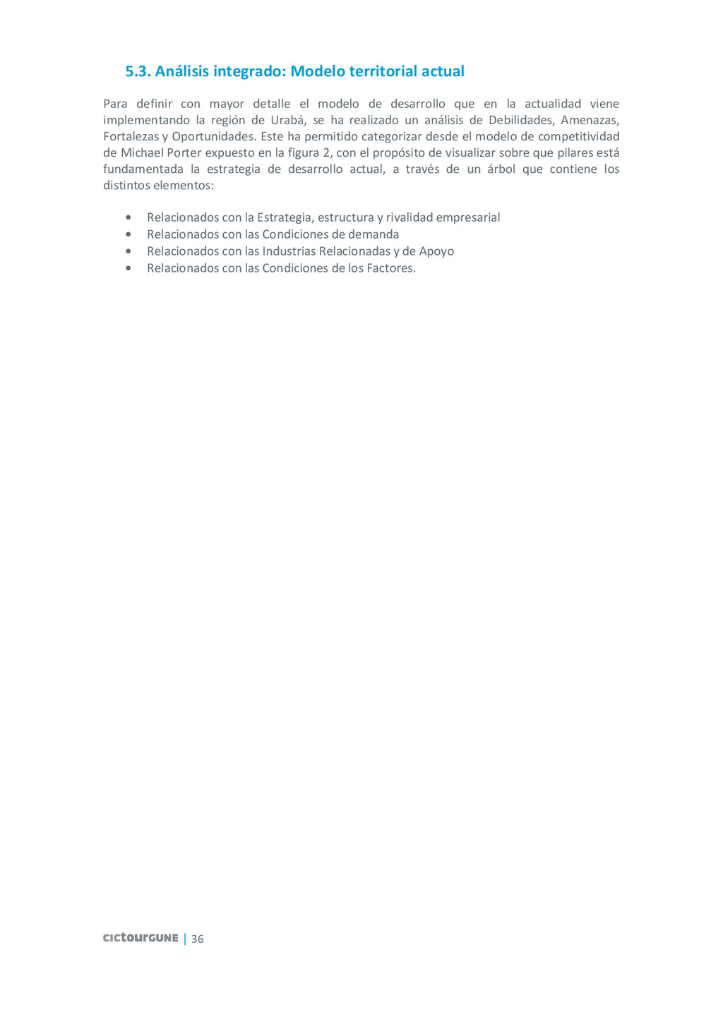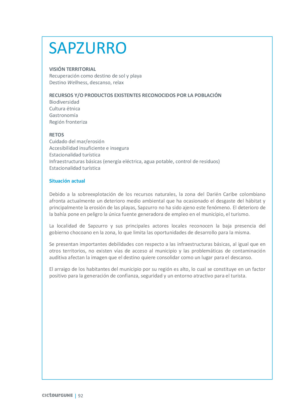 se arroja a continuación permite un acercamiento al desarrollo económico del departamento de Antioquia y su posición con relación al país. De los 46.294.800 millones4 de habitantes que residen en Colombia, 6.065.8465 viven en Antioquia, lo que representa un 13% de la población colombiana. El producto interior bruto (PIB) en Colombia fue de $369.6 millones6, mientras que la cifra alcanzada en Antioquia fue de $42,4 mil millones7, es decir, el departamento contribuye en un 14,7% al PIB nacional. Antioquia se presenta como el segundo departamento después de Bogotá que mayor participación tiene en el PIB nacional. Al igual que en la distribución del PIB nacional, los establecimientos financieros, seguros actividades inmobiliarias y los servicios a las empresas es la actividad que más aporta al PIB del departamento antioqueño. En el caso de la actividad económica comercial y de hostelería, sin embargo, se observa un recorrido más sostenible durante los últimos años, en comparación a la tendencia nacional analizada anteriormente. Para el 2012 se prevé una mejoría con respecto al año anterior. Gráfico 4 Evolución del % de PIB por rama de actividad en Antioquia. Fuente: DANE http://www.dane.gov.co/index.php/cuentas-economicas/cuentas-departamentales Última actualización: 12/03/2014. A continuación se muestra el Escalafón de la Competitividad de los Departamentos de Colombia, el cual constituye un indicador de desarrollo económico, social e institucional. En él se expresan los diversos activos estructurales con patrones de especialización particulares que tiene cada departamento. 4 Dato obtenido del Banco Mundial. Última actualización: 9/11/2011 5 Dato obtenido del Plan de Desarrollo Turístico de Antioquia - 2012. Última actualización: 2010 6 Dato obtenido del Banco Mundial. Última actualización: 9/11/2011 7 Dato obtenido del Plan de Desarrollo Turístico de Antioquia - 2012. Última actualización: 2010 22,20 22,34 21,60 21,31 20,35 20,28 20,31 20,08 20,80 21,09 21,57 21,21 21,74 13,34 13,20 13,36 13,31 12,79 12,40 12,81 13,12 13,15 13,06 13,5 13,2 13,6 1,49 1,41 1,57 2,32 2,25 2,61 2,99 2,13 2,73 2,66 2,4 3,1 3,5 0,00 5,00 10,00 15,00 20,00 25,00 2000 2001 2002 2003 2004 2005 2006 2007 2008 2009 2010 2011p 2012pr % del PIB impuestos no incluidos Participación porcentual por rama de actividad del PIB de Antioquia ESTABLECIMIENTOS FINANCIEROS, SEGUROS, ACTIVIDADES INMOBILIARIAS Y SERVICIOS A LAS EMPRESAS INDUSTRIA MANUFACTURERA ACTIVIDADES DE SERVICIOS SOCIALES, COMUNALES Y PERSONALES COMERCIO, REPARACIÓN, RESTAURANTES Y HOTELES CONSTRUCCION AGRICULTURA, GANADERIA, CAZA, SILVICULTURA Y PESCA TRANSPORTE, ALMACENAMIENTO Y COMUNICACIONES ELECTRICIDAD,GAS Y AGUA EXPLOTACION DE MINAS Y CANTERAS