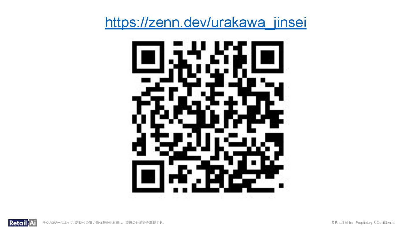 テクノロジーによって、新時代の買い物体験を生み出し、 流通の仕組みを革新する。 © Retail AI Inc. Proprietary & Confidential https://zenn.dev/urakawa_jinsei