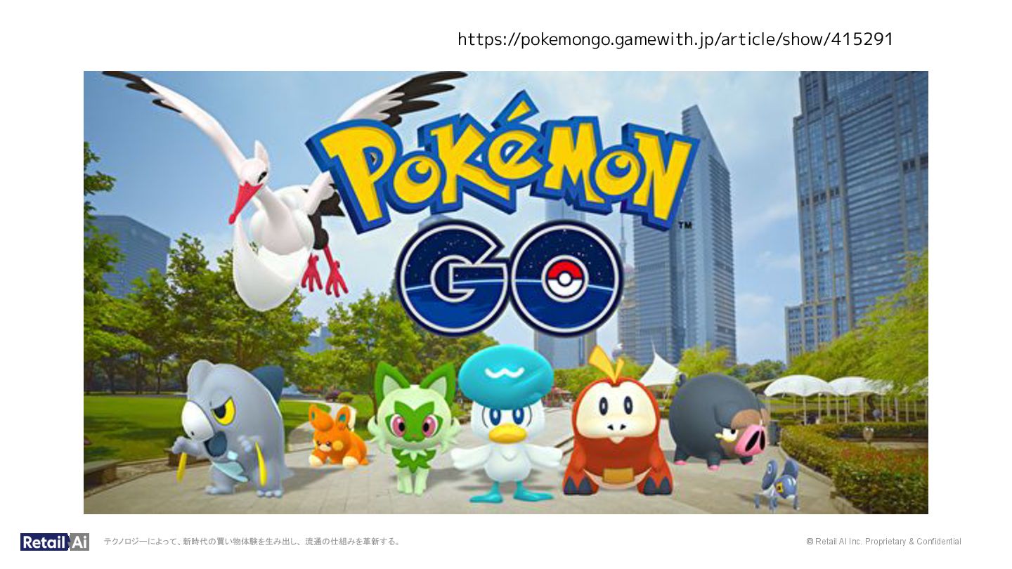 テクノロジーによって、新時代の買い物体験を生み出し、 流通の仕組みを革新する。 © Retail AI Inc. Proprietary & Confidential https://pokemongo.gamewith.jp/article/show/415291