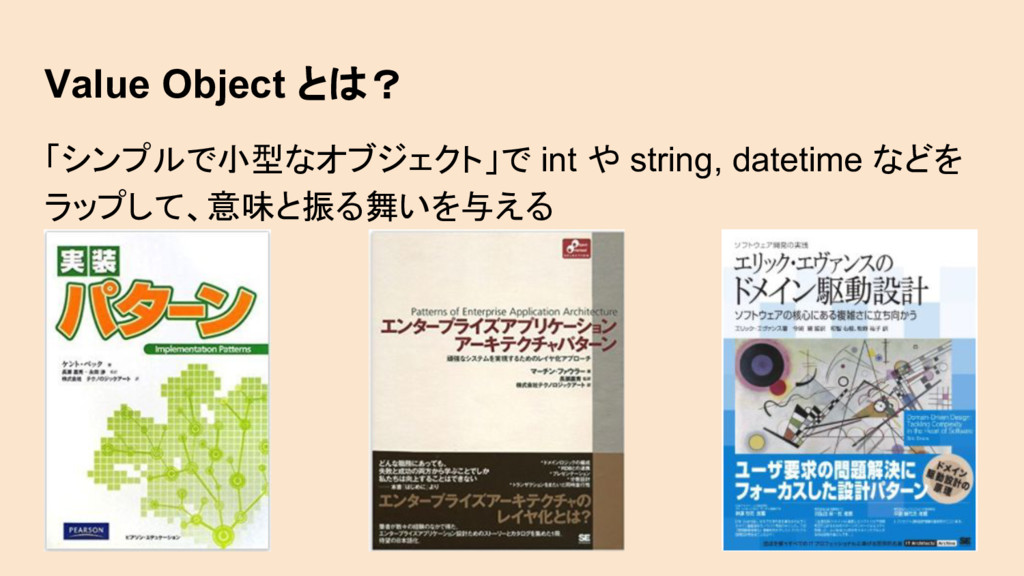 Value Object とは? 「シンプルで小型なオブジェクト」で int や string, datetime などを ラップして、意味と振る舞いを与える