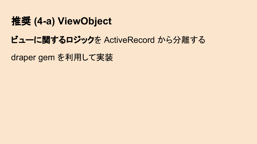 推奨 (4-a) ViewObject ビューに関するロジックを ActiveRecord から分離する draper gem を利用して実装