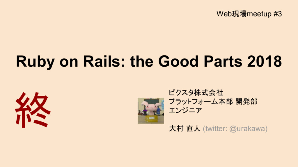 Web現場Meetup#3 Ruby on Rails: the Good Parts 2018