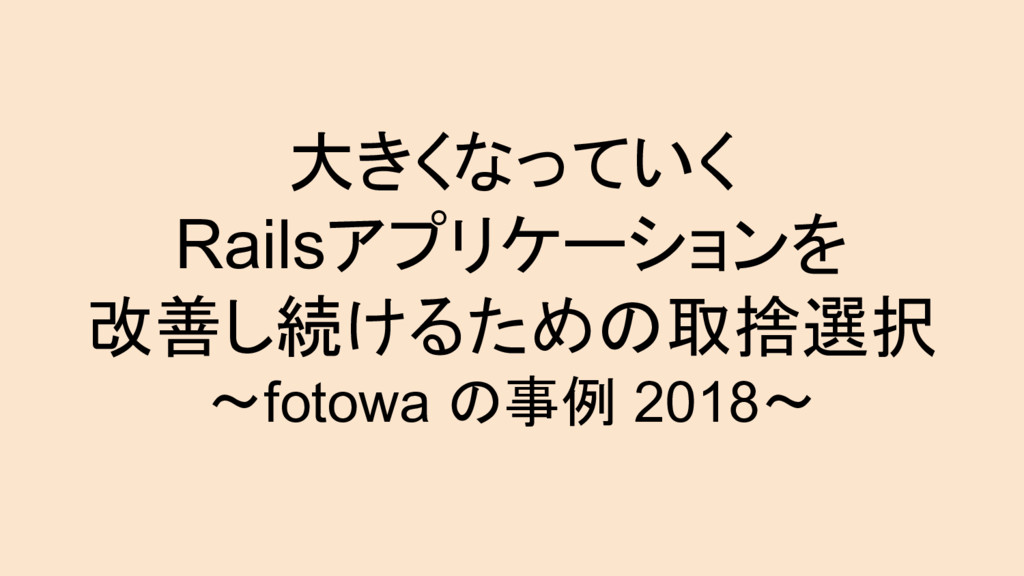 大きくなっていく Railsアプリケーションを 改善し続けるための取捨選択 〜fotowa の事例 2018〜