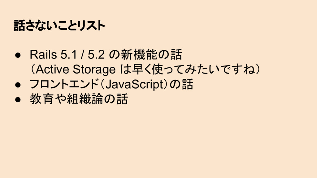 • Rails 5.1 / 5.2 の新機能の話 (Active Storage は早く使ってみたいですね) •